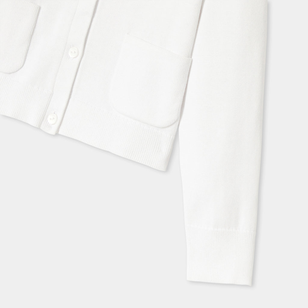 柔らかくしなやかなオーガニックコットンジャージー生地を使用した、毎日の着用を暖かくしてくれるカーディガン。 ボタンで開閉でき、スピードを持続したパッチポケットが目を惹きます。 通園・通学には、ブラウスやセーラーストライプTシャツを合わせて。
