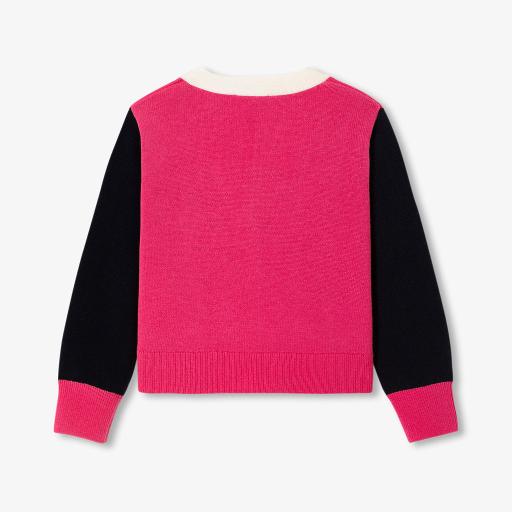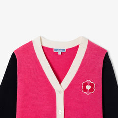 季節の装いを盛り上げる、カラーブロックのカーディガン。柔らかでしなやかなニット、刺しゅうのフラワーワッペン、パッチポケットが魅力的なVネックモデルです。襟付きTシャツとワイドレッグのジーンズに合わせれば、オリジナリティあふれるシルエットが完成します。