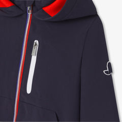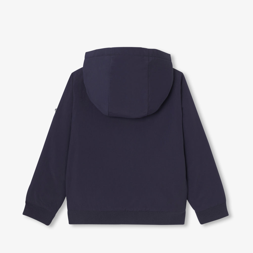 ミッドシーズンに大活躍のジャケット。通園・通学にぴったりです。スポーティーシックで実用的なジャージー製で、裏地にはしなやかなネオプレーン調生地を使用。フード付きでファスナー開閉、大きなポケットがアクセントの防風ジャケット。スウェットの上に羽織って、ジーンズやスウェットパンツを合わせれば、カジュアルで都会的なスタイルに。