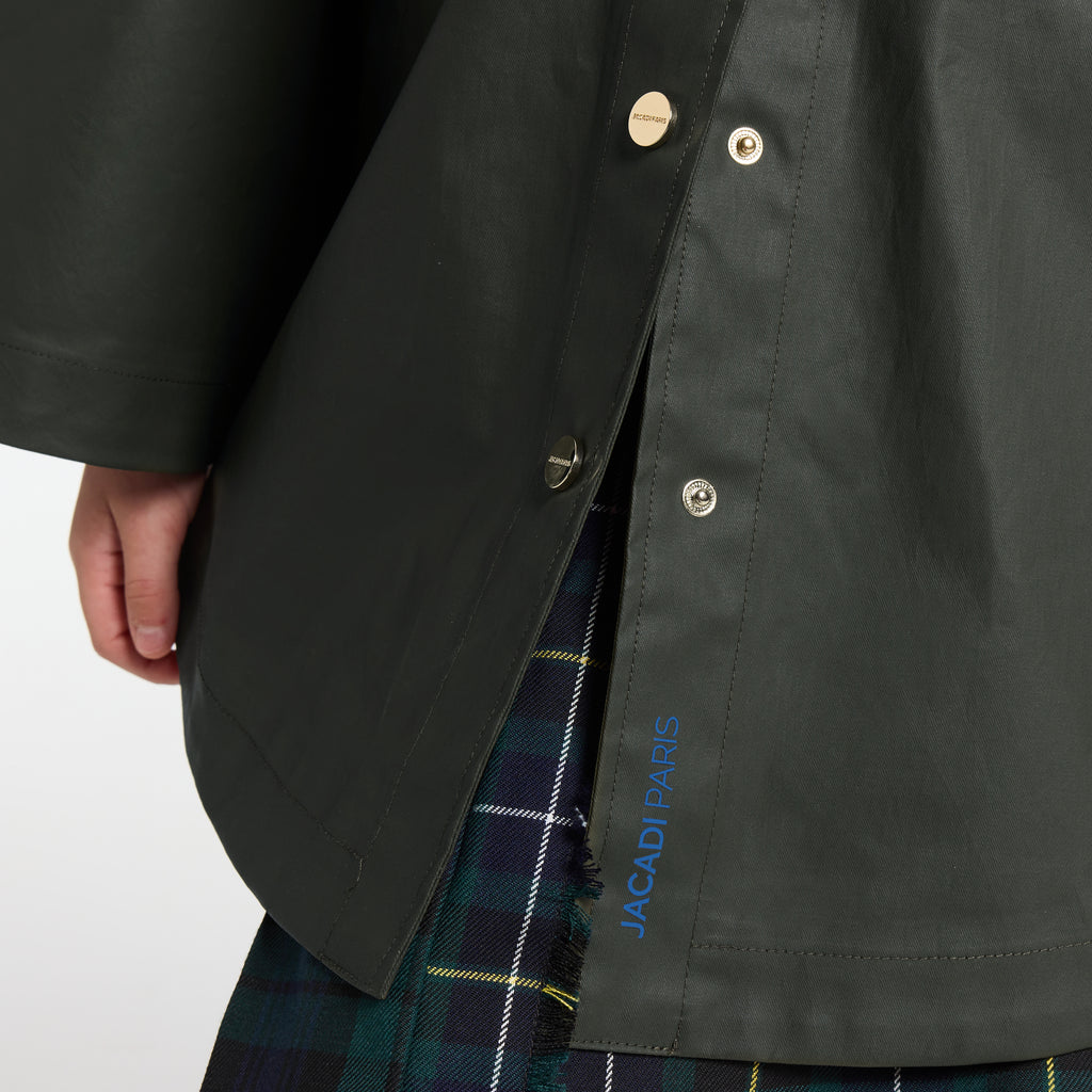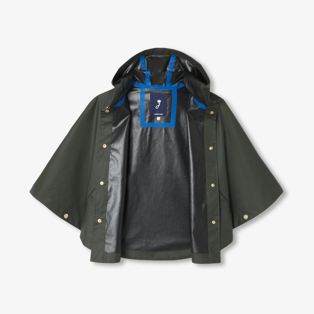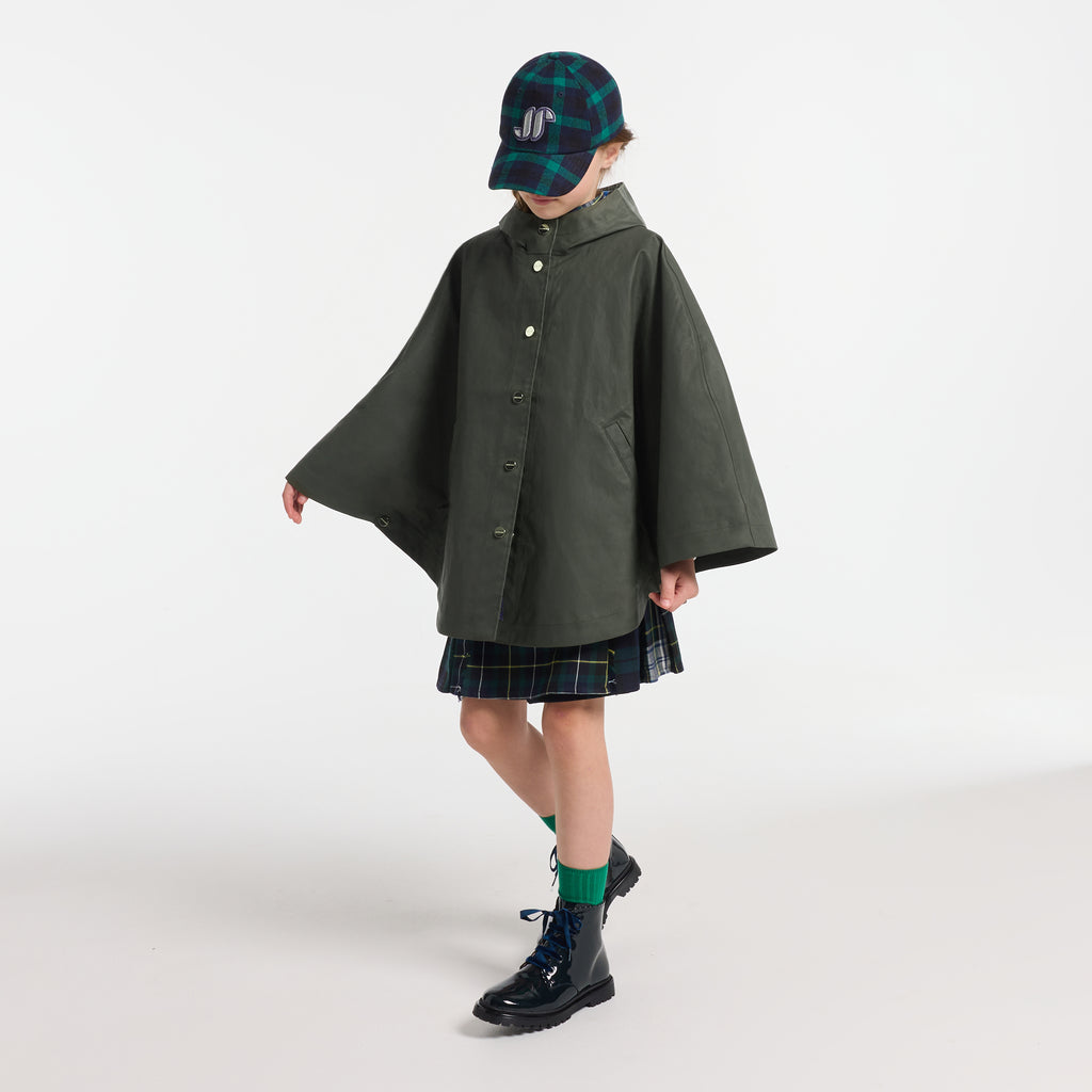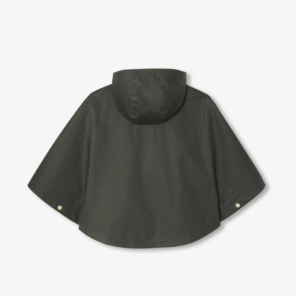 モダンと伝統が調和したケープが再登場。シックで実用的なこの一着は、エレガントでモダンなカーキグリーンの生地。季節の始まりには、スウェットにワイドレッグのジーンズとシューズを合わせてプレッピーに。毎日のコーディネートに活躍する、万能なアイテムです。