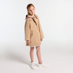 今シーズンも、シックでスマートなコートが登場しました。モダンなワードローブに求められる要素をすべて満たしたアイテムです。撥水加工のパーカーにチェック柄の裏地とコントラストの効いたパイピングをあしらい、取り外し可能なダウンジャケットがセットになっています。季節の始まりには1枚で、寒さが増してきたらダウンジャケットを重ねて、エレガントで万能なベージュのカラーは、着回しも抜群です。