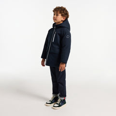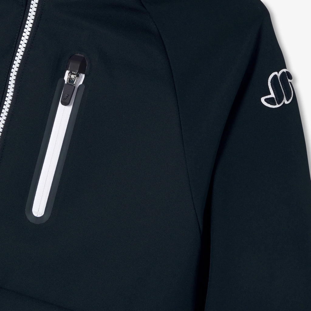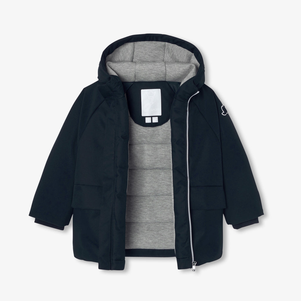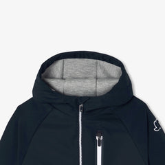 着心地の良さがさらに進化したパーカー。撥水加工を施したツイル素材とネオプレーンニットをミックスし、モダンに仕上げました。柔らかく着心地の良いネオプレーン調ジャージーの裏地付き。フェザーとダウンの縁取り、一体型フード、胸のジップポケット、袖の刺しゅうロゴがスポーティーでシックな印象です。デイリーウェアにぴったりな、暖かく防寒性が高いコート。どんなアクティビティにも寄り添います。