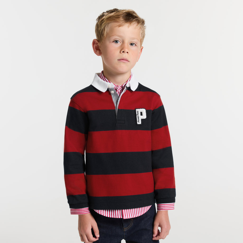 キャンパススタイルにインスパイアされたラガーポロシャツ。厚手のコットンジャージーを使用した冬モデルです。ワイドストライプの伝統的なポロスタイルが特徴。胸元の刺しゅうバッジとコントラストの効いた襟がアクセントです。ツイルパンツとブーツに合わせれば、モダンなシルエットに。実用的かつおしゃれな一着です。