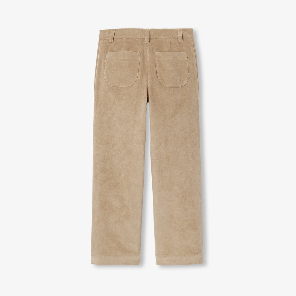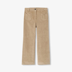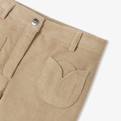 ジーンズに代わるレトロシックなワイドレッグパンツ。デイリーウェアをエレガントで快適なスタイルに仕上げました。柔らかな細かいコーデュロイ生地を使用し、ワイドレッグのシルエットにフラワー型のポケットが愛らしさを添えます。ブラウスとカーディガンに合わせれば、シックで都会的な装いに。