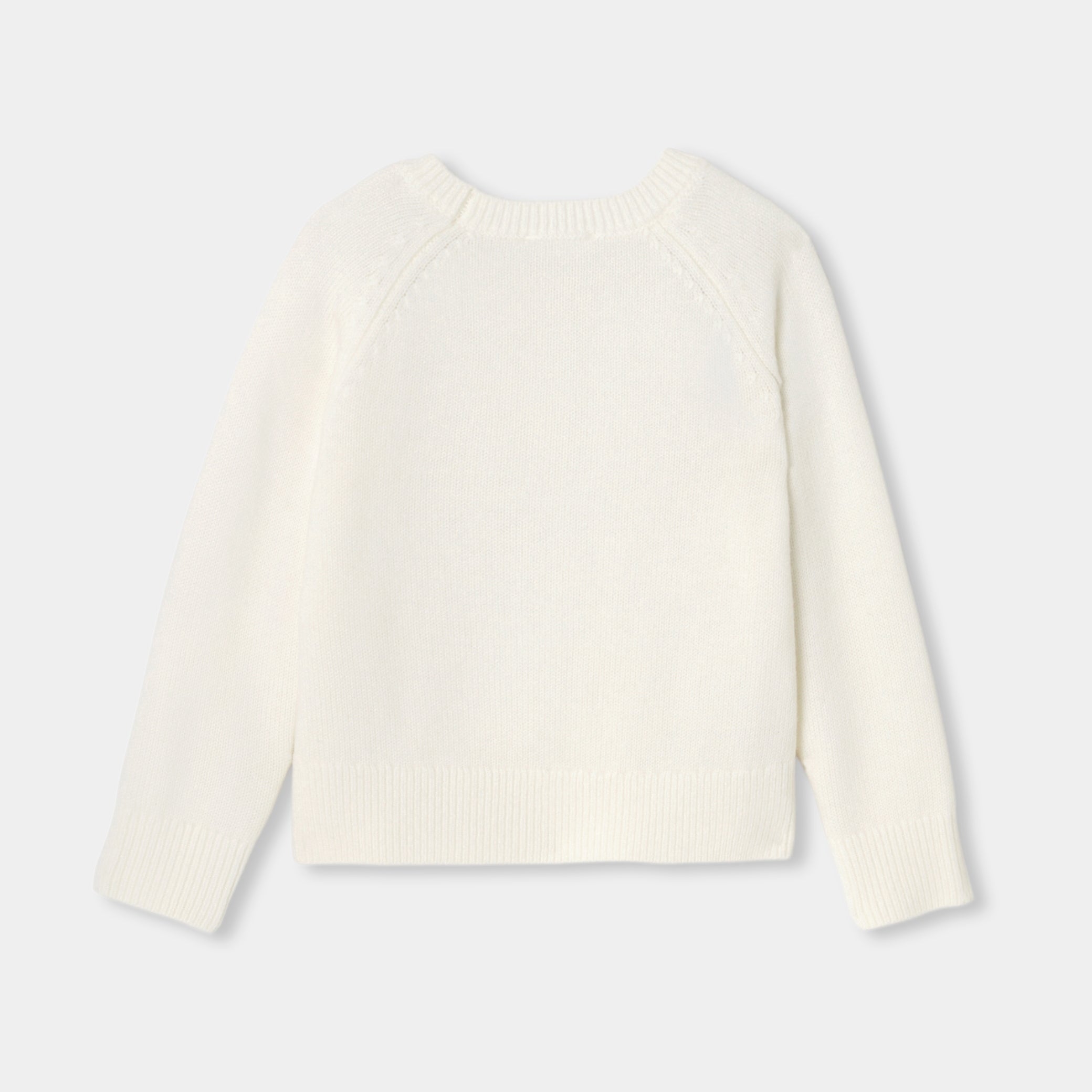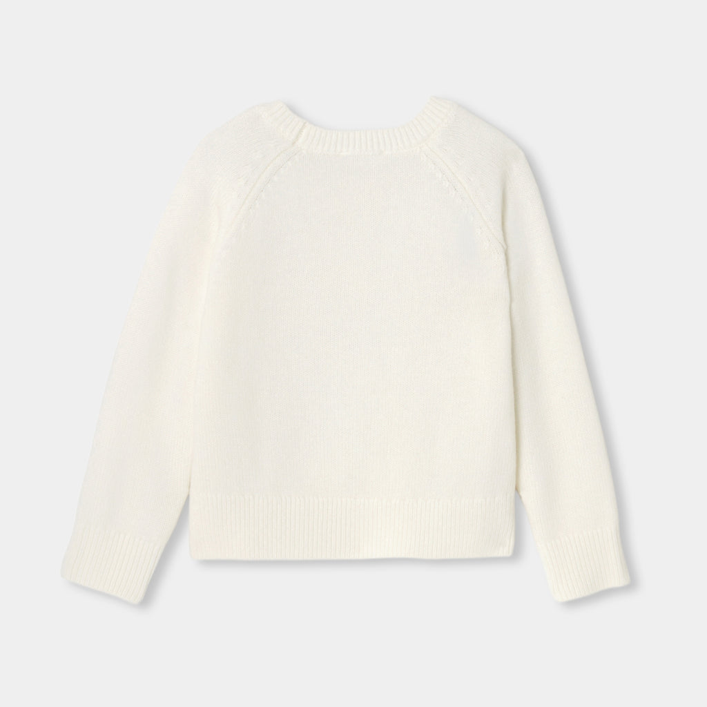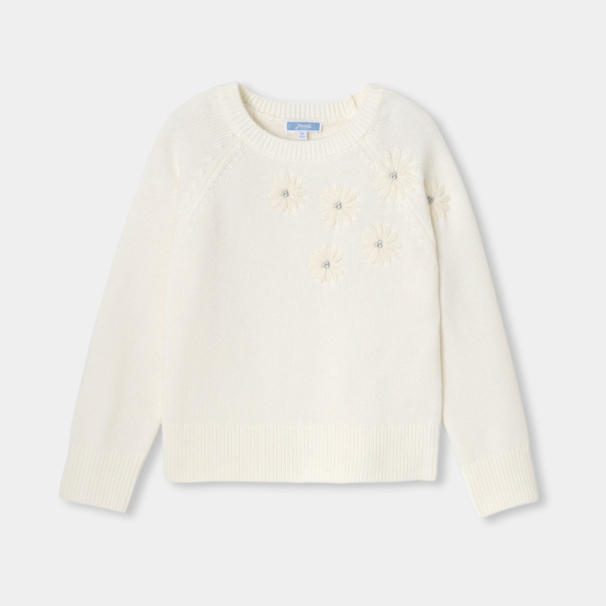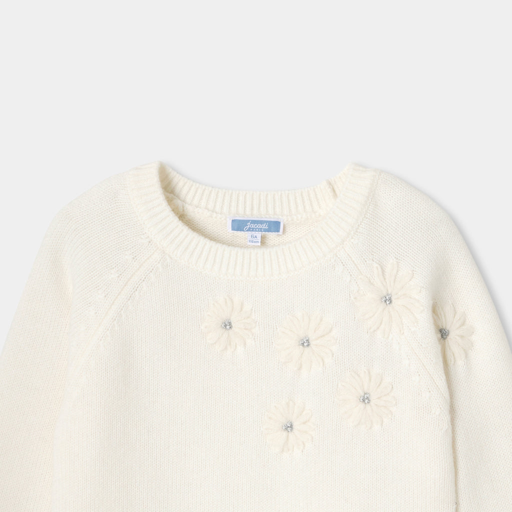 冬の訪れとともに手にしたい、エレガントなウールセーター。厚手ニットで暖かみのある一着です。ネックラインには刺繍の花をアシンメトリーにあしらいました。普段着にも、ホリデーシーズンのフォーマルな装いにも。