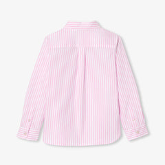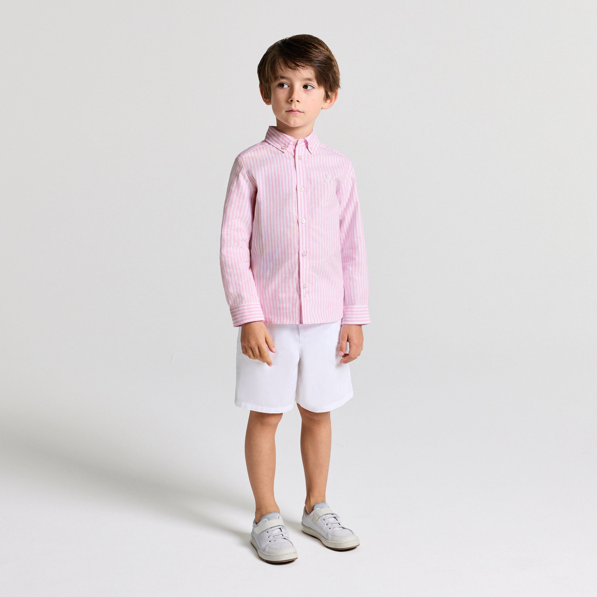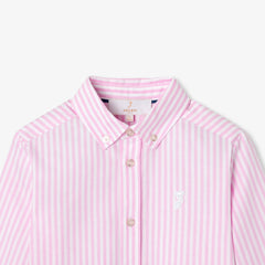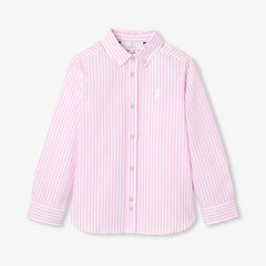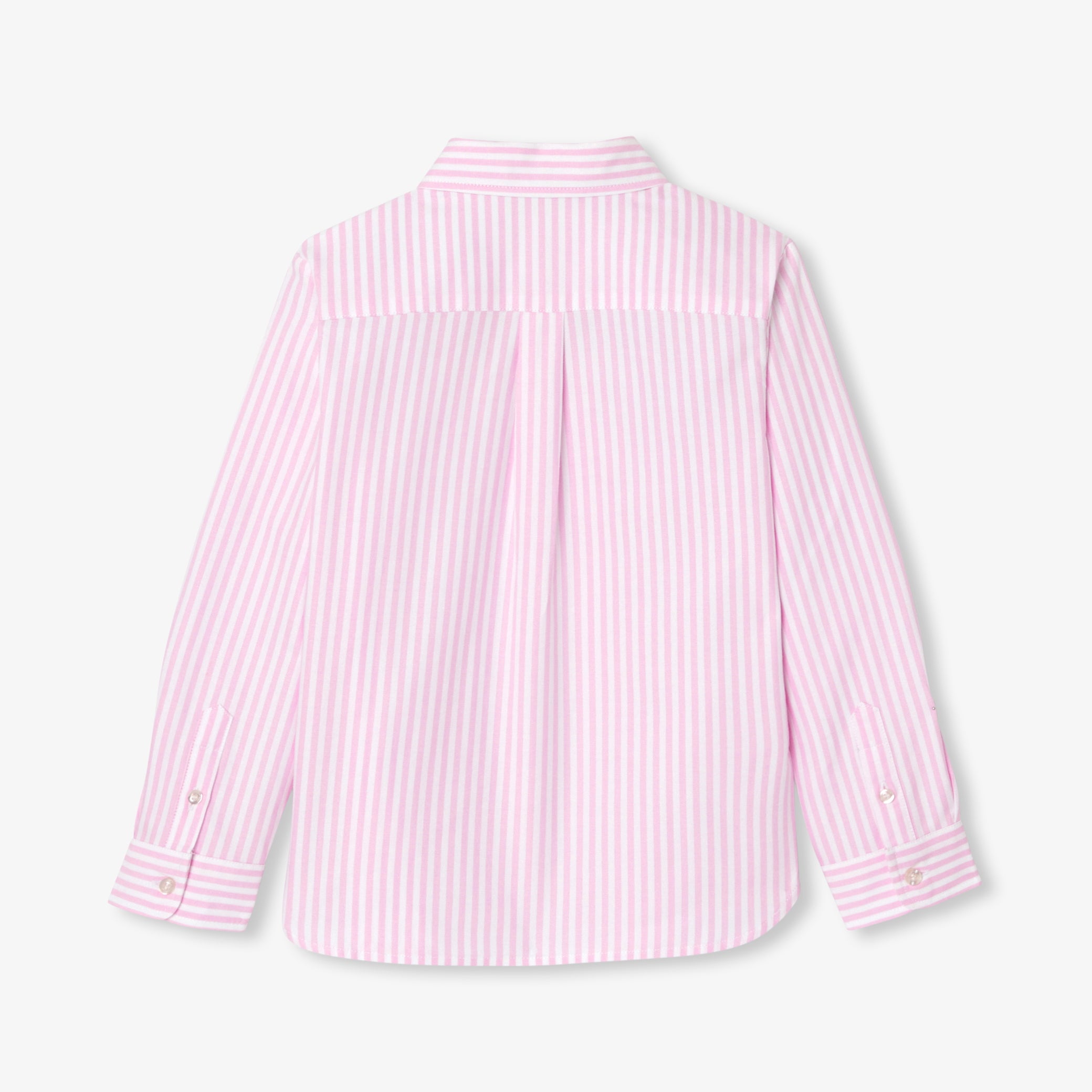 ストライプ柄のオックスフォードコットンシャツ。完璧なフィット感を実現しました。ボタンダウンカラー(襟)、刺しゅうバッジ、細部までこだわった仕上げが特徴です。