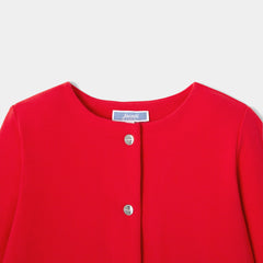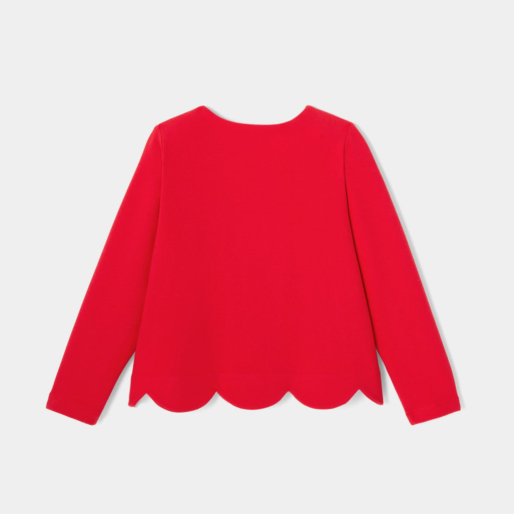 柔らかなオーガニックフリースのカーディガンは日常着にぴったり。スカラップの裾がモダンなデザイン。肌寒い季節にブラウスやTシャツの羽織りとしてもおすすめです。
