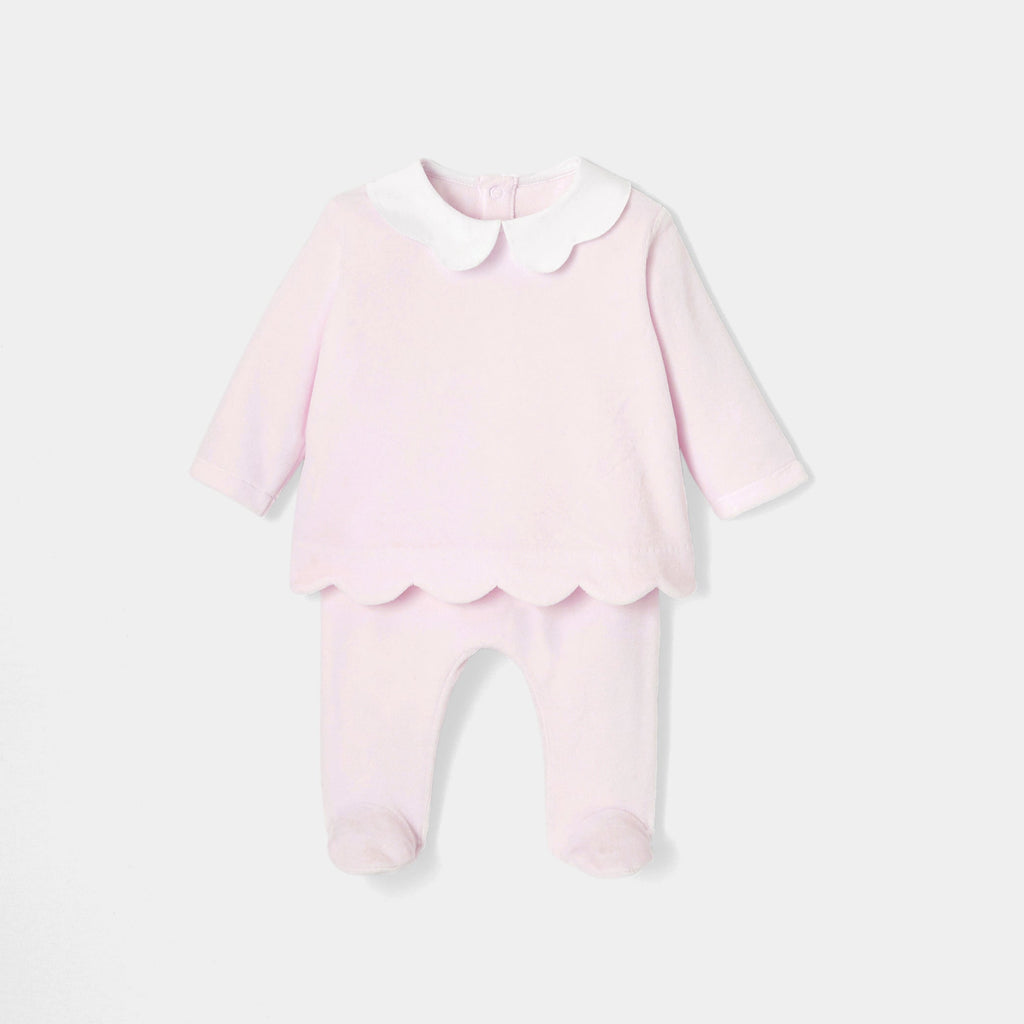 フレンチシックなアンサンブルセット。ベロア調生地の着やすくて着心地良いセットはワードローブにぴったりです。