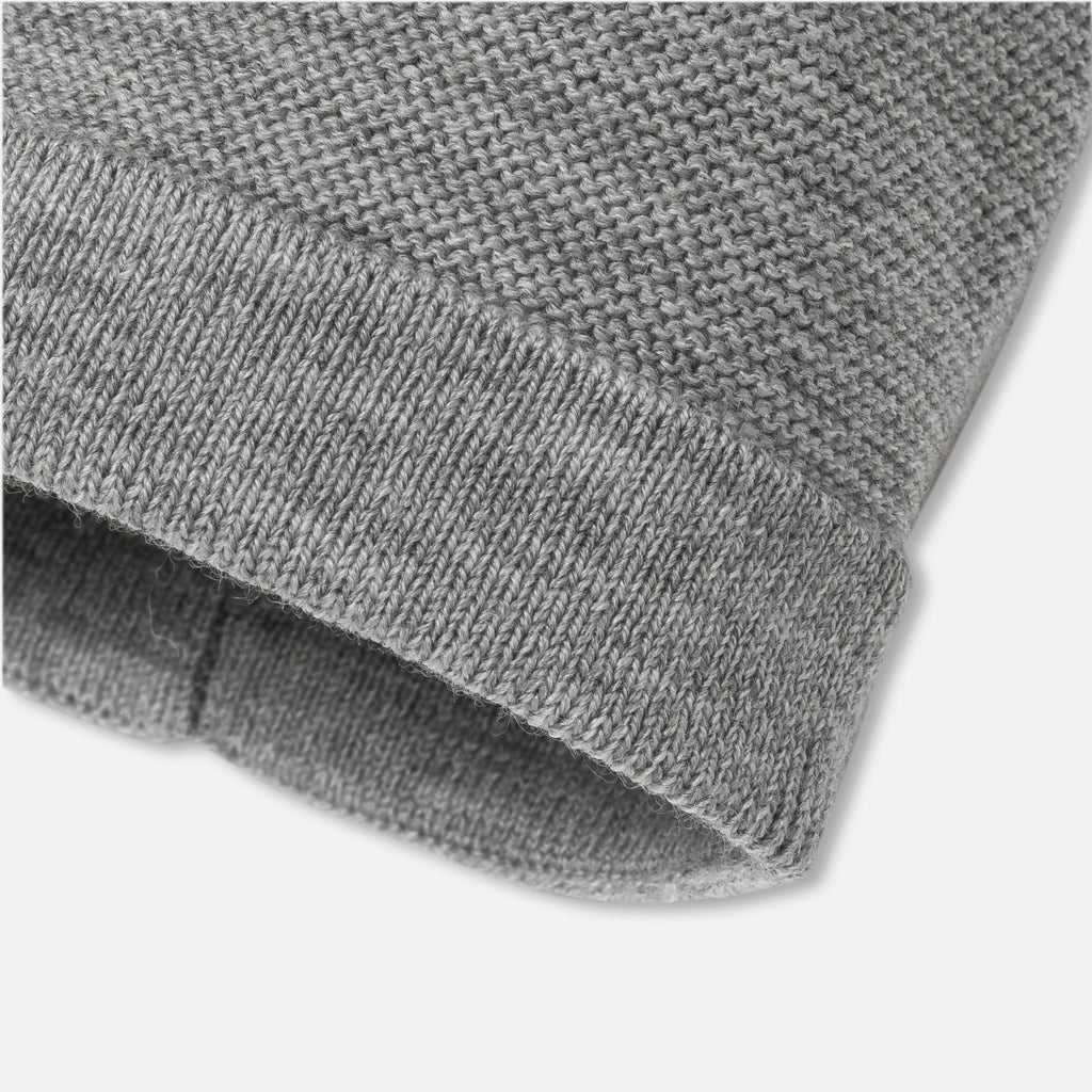 お出掛け時に欠かせない、機能的で暖かなレスポンシブウールのニット帽。柔らかでかぶりやすく、ご出産後からすぐにお使いいただけます。