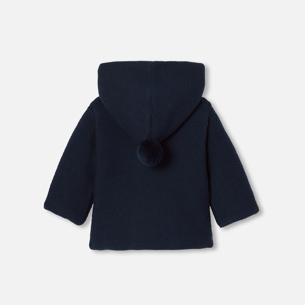 ご出産後からすぐにお使いいただける、小さなコートのようなシルエットが美しいジャカディのアイコニックなニットパーカージャケット。メリノウールを使用しており、コットン裏地付き、軽量の中綿入りで、赤ちゃんを暖かく快適に包み込みます。フードの付いたボタン開閉のデザインで、ご家族で愛用いただける、ご自宅用にもギフトにもぴったりなアイテムです。