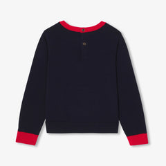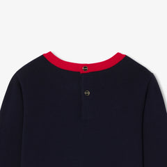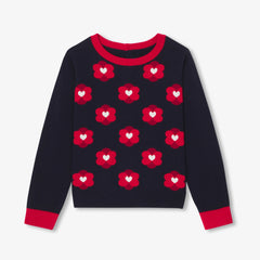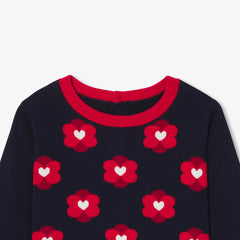 ジャカディの技術を詰め込んだ、レトロシックでカラフルなセーター。柔らかく肌触りの良いオーガニックコットンを使用し、前面にオリジナルのフラワーモチーフをあしらいました。コントラストの効いたネックラインと袖口が、幾何学的な印象を引き立てます。新学期には、ワイドレッグジーンズとシューズに合わせて。