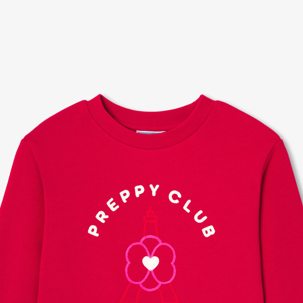 スポーティでシック、そして実用的なスウェット。毎日のワードローブに欠かせないアイテムです。起毛フリース製で、エッフェル塔と花とハートがデザインされています。ワイドパンツとスニーカーを合わせれば、プレッピーでスポーティなシルエットに。