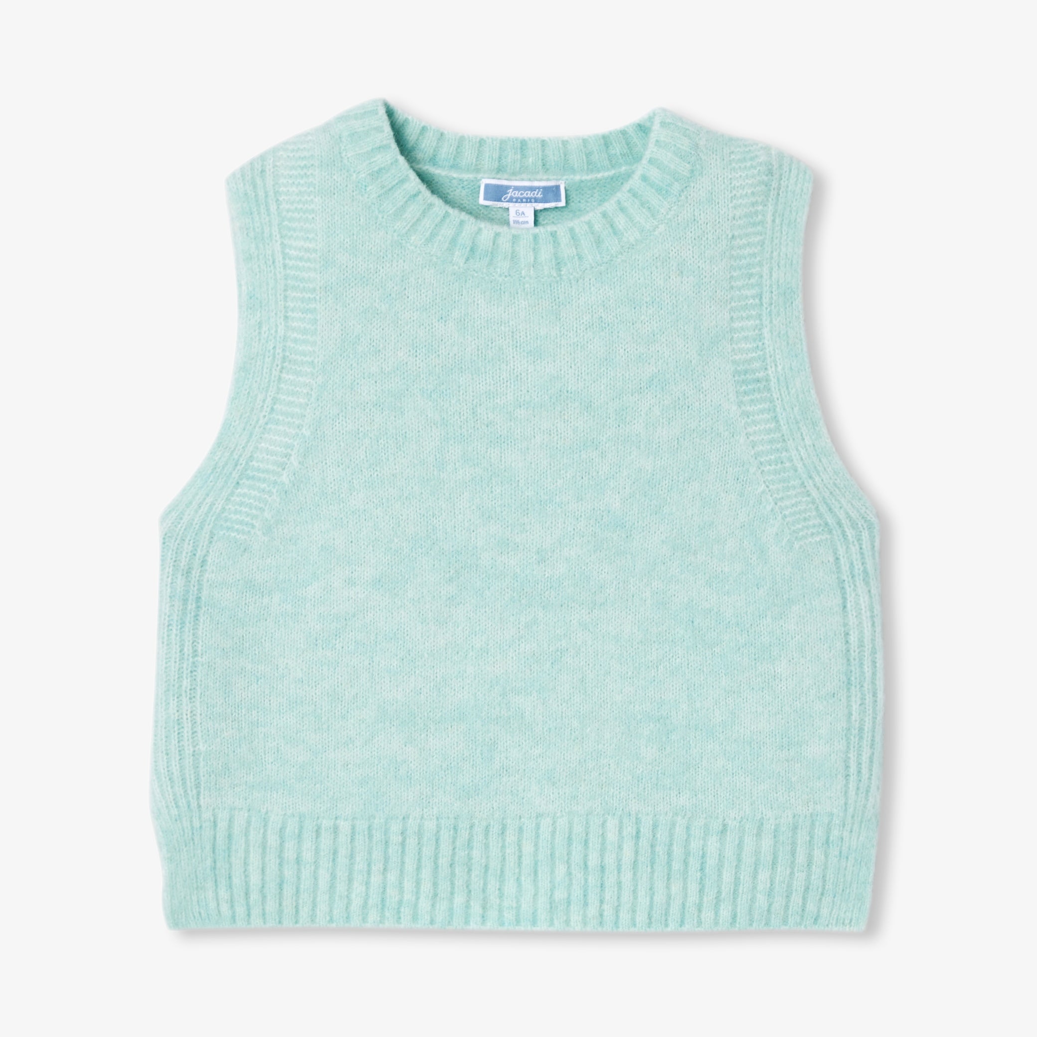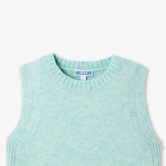 快適さとミニマルなエレガンスを兼ね備えたノースリーブセーター。冬のマストアイテムです。レスポンシブルウールとアルパカを使った、ふんわりとした仕上がりの新しいニットです。リバティプリント(花柄)のブラウスとベロア調生地のパンツを合わせれば、シックで暖かみのあるシルエットが完成します。