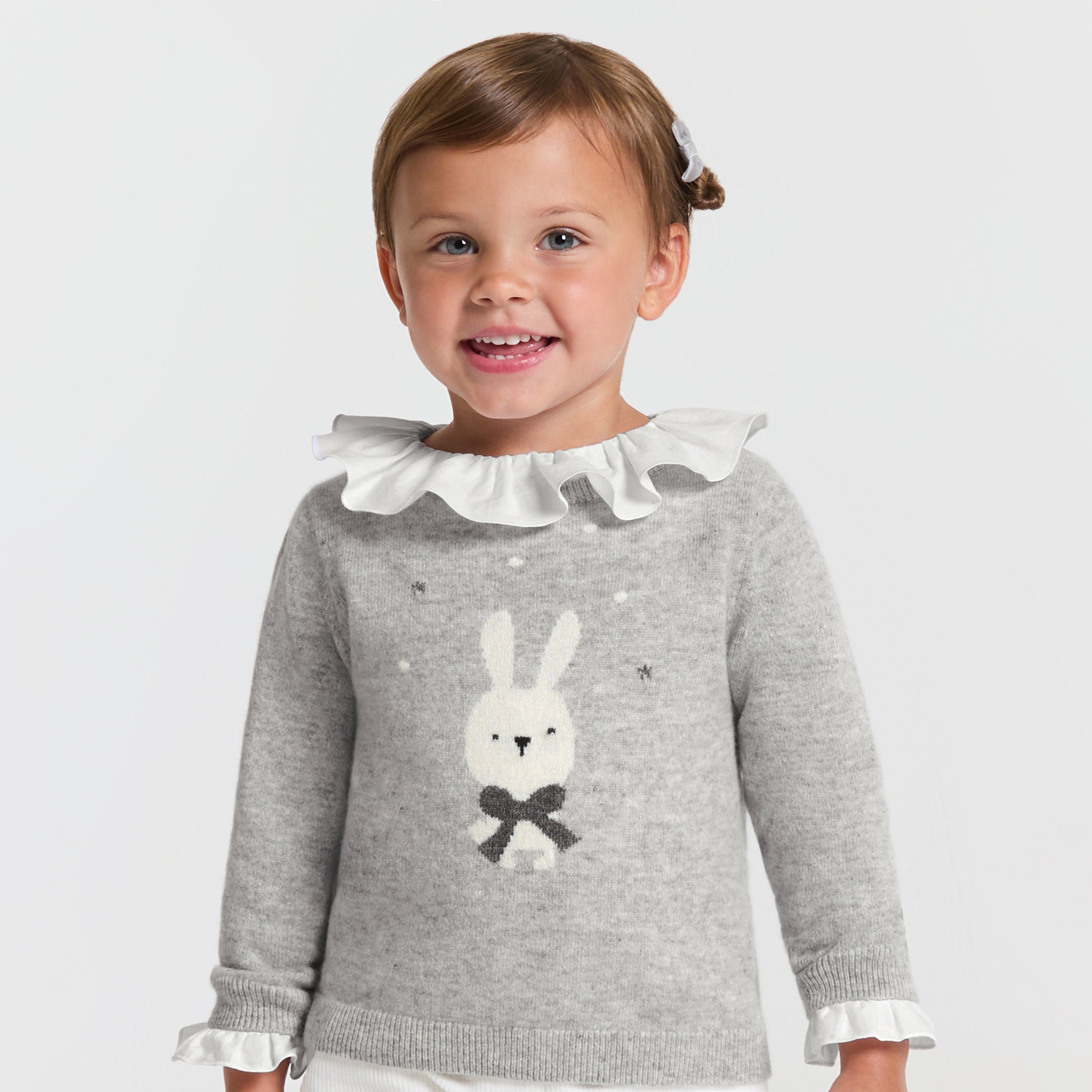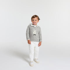 冬のワードローブに欠かせない定番セーターが、おとぎの世界へと誘います。上質なカシミヤの柔らかさと、うさぎモチーフとラメのリボンが愛らしさを添える一着。ホリデーシーズンにふさわしい、本物の魅力を赤ちゃんに贈ります。