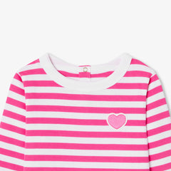 ジャカディのアイコニックなセーラーTシャツが今シーズンも登場。新学期にぴったりのオーガニックコットンジャージー素材で、胸元に刺しゅうされたハートがアクセントの、デイリーユースの必需品です。ゆったりとしたジーンズとトレーナー、またはベロア調生地のショートパンツとシューズに合わせれば、シックなパリらしいシルエットに。どんなコーディネートにもマッチします。