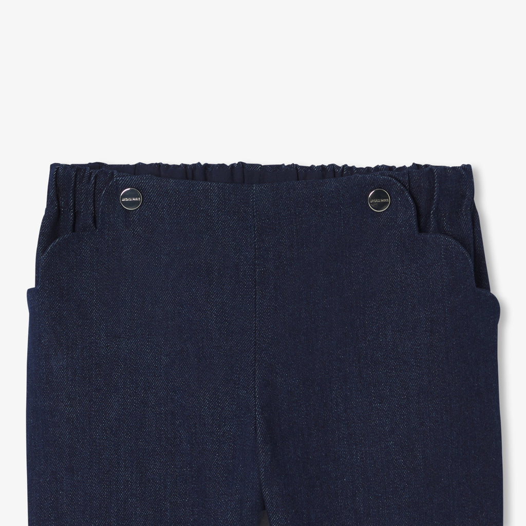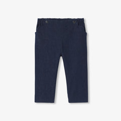 季節をシックで快適に彩るジーンズ。柔らかなデニムキャンバスに、スカラップポケットと飾りダブルボタンが魅力的。伸縮性のあるウエストゴム入りです。普段着に最適で、ブラウスやセーラーアイテムにもぴったり。この秋のワードローブに。