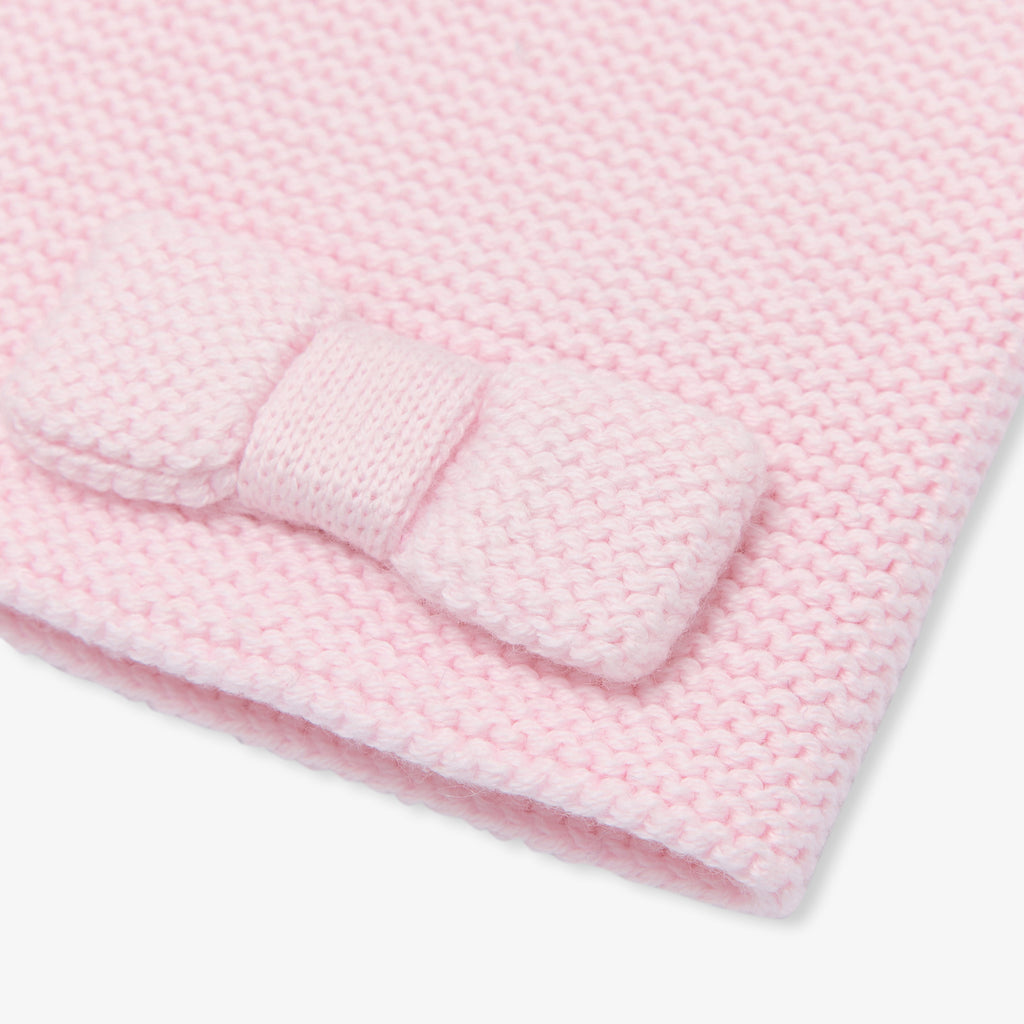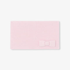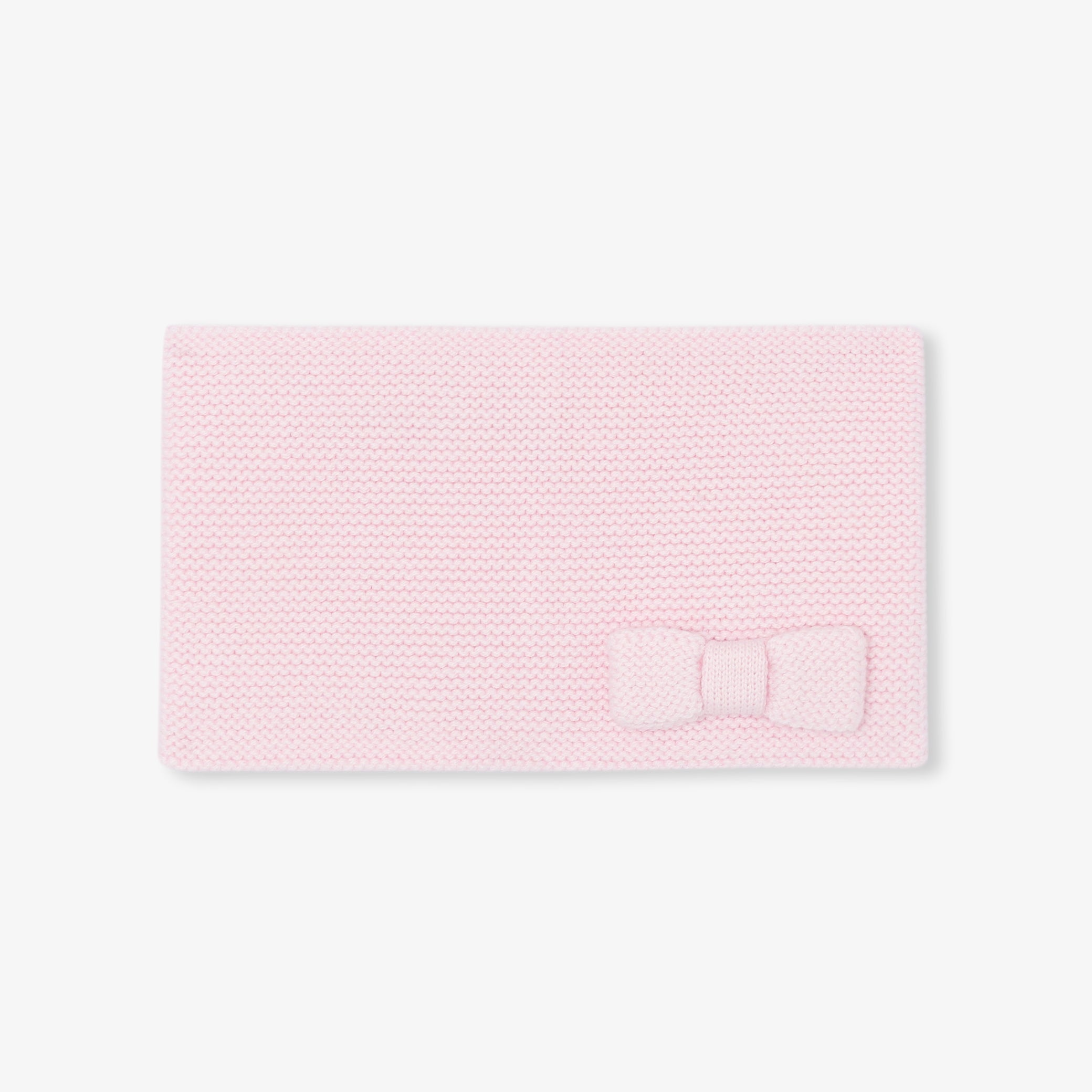 ソフトでカバー力のあるガーター編みのスヌード。サイドにエレガントなフラットリボンがあしらわれています。柔らかな色合いで、お揃いの帽子やミトン手袋(別売り)と合わせれば、寒さに負けないシックなシルエットに。