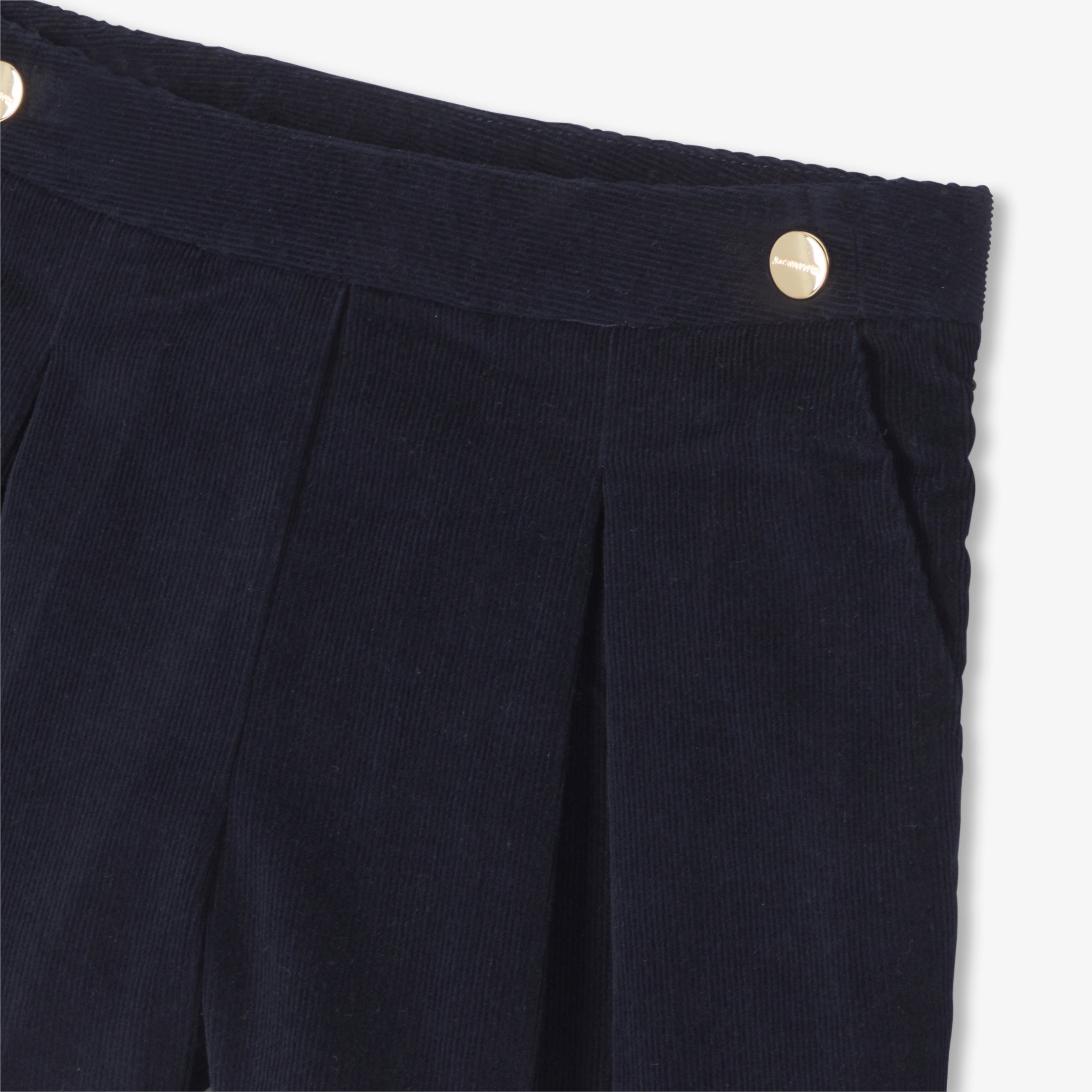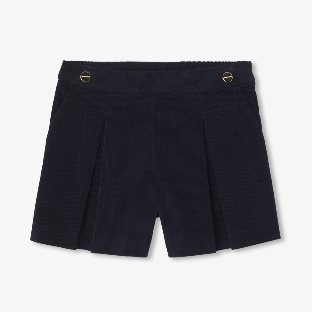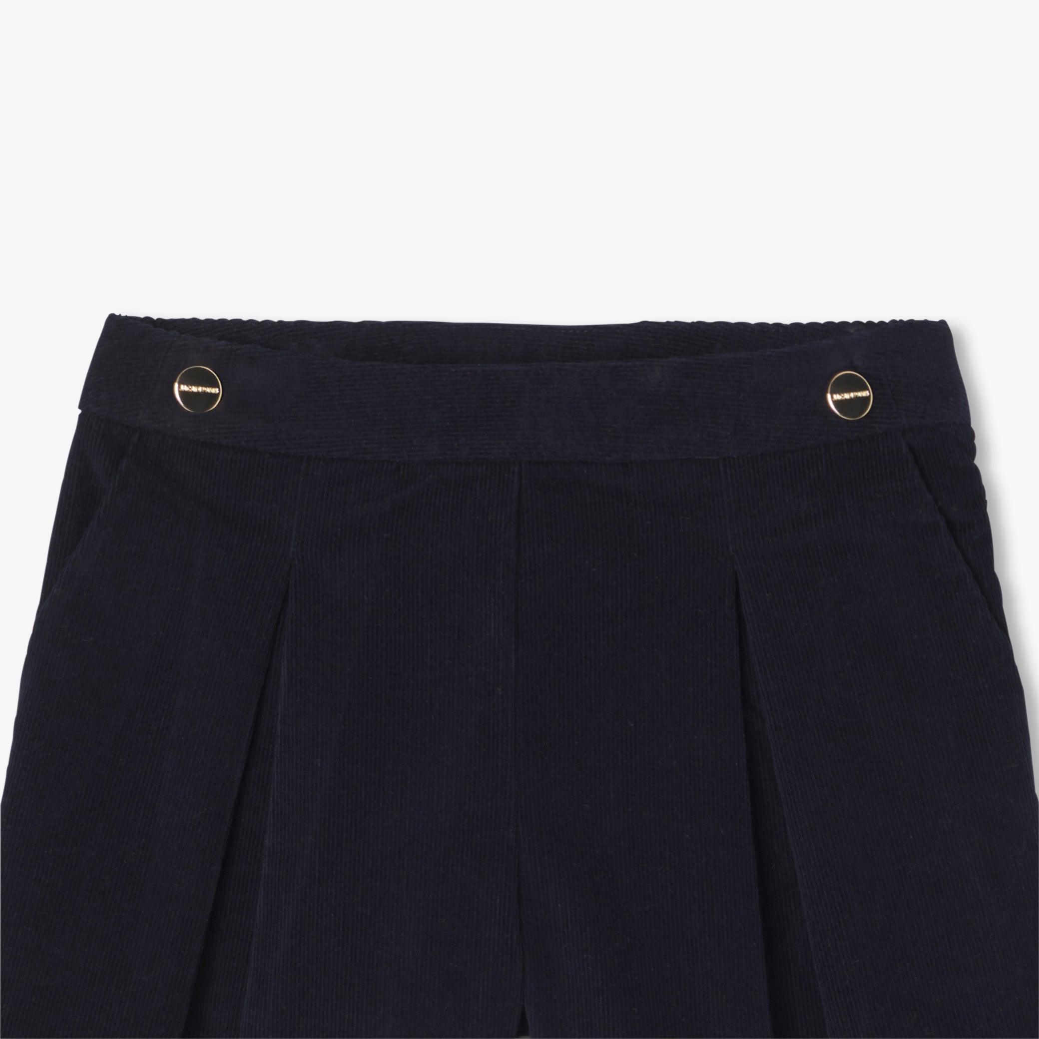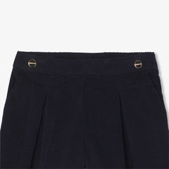 今シーズン、デイリーユースにおすすめの、シックで実用的なキュロット。コーデュロイ生地にコットンの裏地を施し、エレガントなプリーツをあしらったプレッピーなモデル。通学にはブラウスとハイソックスを合わせて。