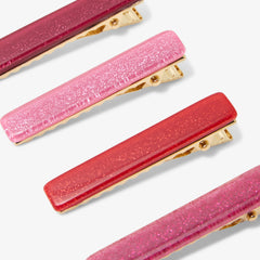 細い髪もしっかりと留めるヘアクリップセット。光沢のある樹脂製で、お洋服と合わせやすいカラーが揃っています。付け外しも簡単。季節や休日のヘアスタイルにさりげない輝きをプラスします。
