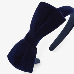 可愛いリボンをあしらったベロア調生地のカチューシャ。どんなシーンにもエレガンスを添えてくれます。お出かけの日の装いに最適です。通園・通学やお誕生日にも。