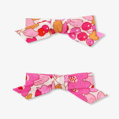 エレガントで実用的なヘアクリップ2個セット。お子さまの初めてのヘアアレンジにぴったりな、魅力的なヘアクリップです。リバティプリント(花柄)のリボンをあしらいました。細い髪もしっかりとまとめるクロコダイルクリップ式。