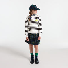 過去のデザインアーカイブからインスピレーションを得た、アイコニックなJキルトのタータンスカートが再登場。3種類のアイコニックなタータンチェックを組み合わせ、シックで大胆なプレッピースタイルを演出する一着。柔らかなフランネル調生地で仕立てられています。サイドにあしらわれたカラフルなボタンがアクセント。デニムブラウスとハイソックスに合わせて。