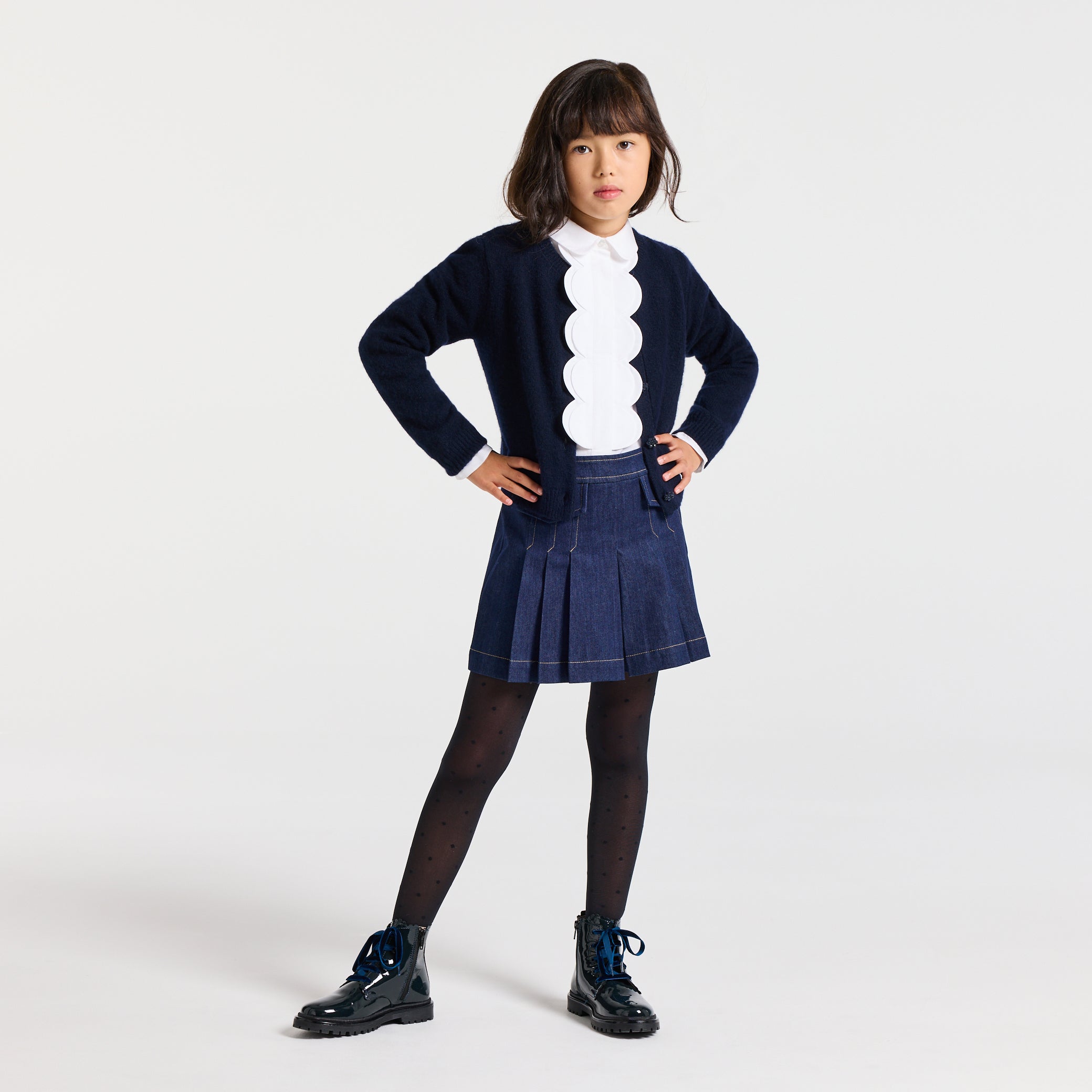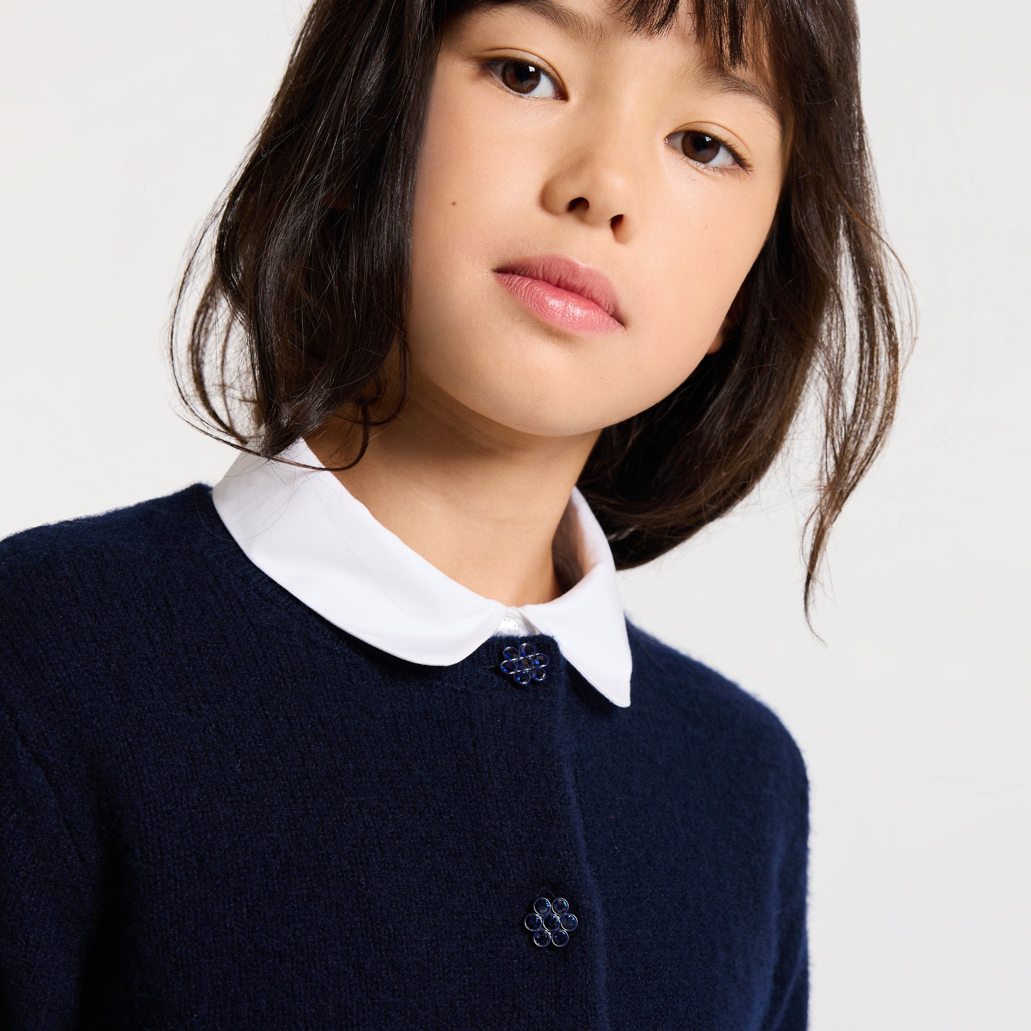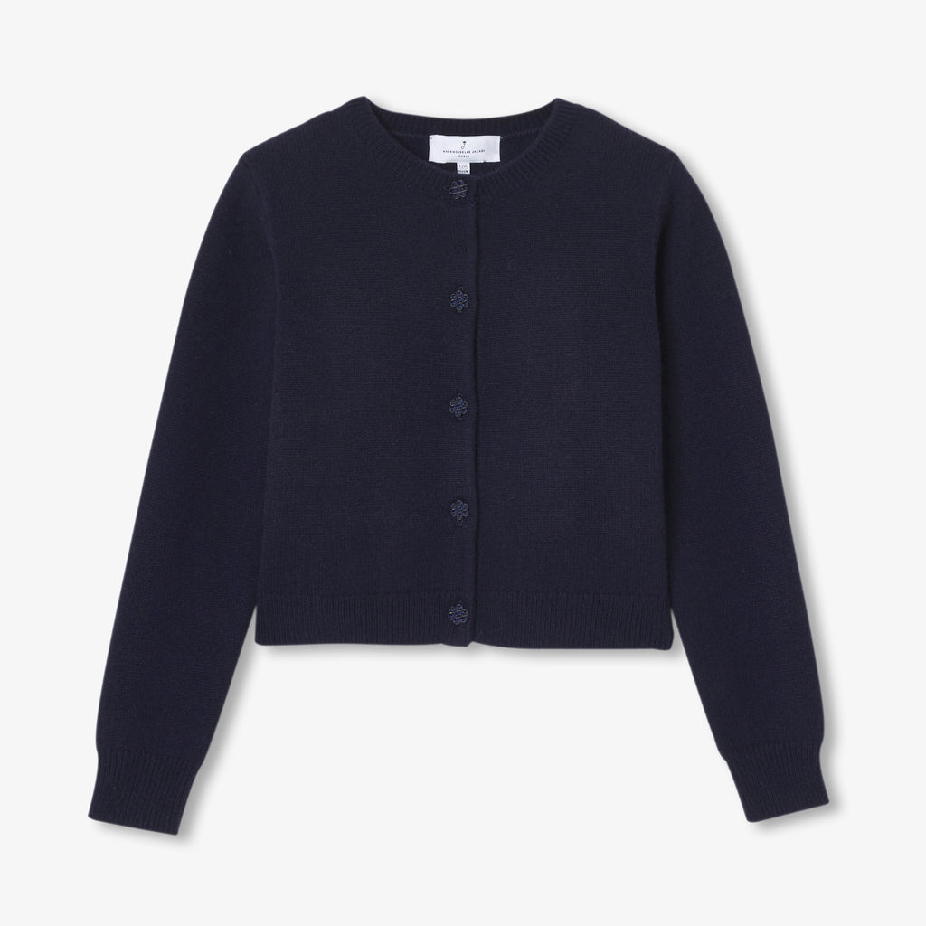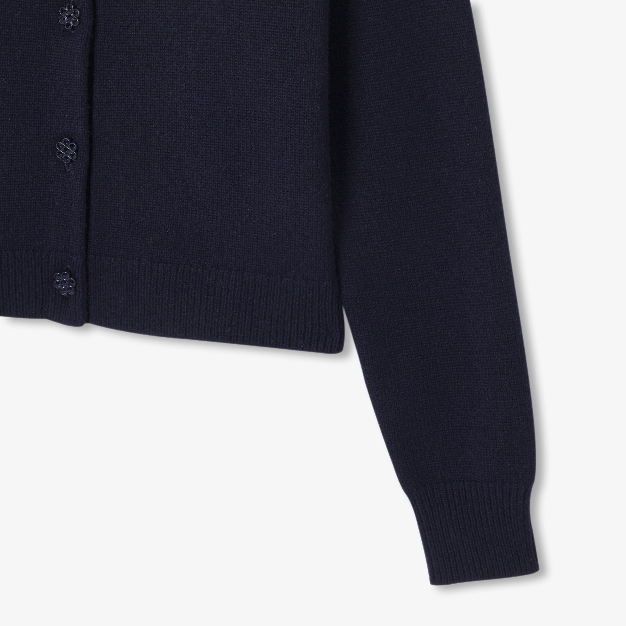 ウールとカシミヤを贅沢にブレンドした、心ときめくカーディガン。煌めくビジューボタンをあしらい、細部までクラス感のある仕上がりにこだわりました。デニムドレスの上にさらりと羽織れば、モダンさと気品が調和した、洗練されたシルエットが完成します。