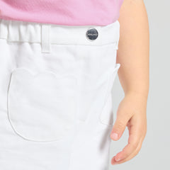 春のワードローブに加えたくなる、ホワイトのストレートパンツ。コットンボイルの裏地付きで履き心地も良く、チューリップ型のパッチポケットがスタイリッシュなアクセントになっています。ブラウスやTシャツと合わせてみて。