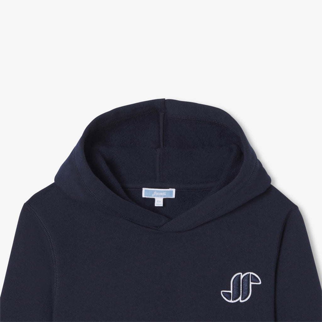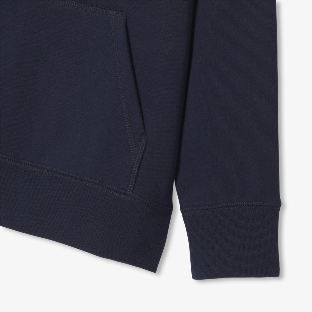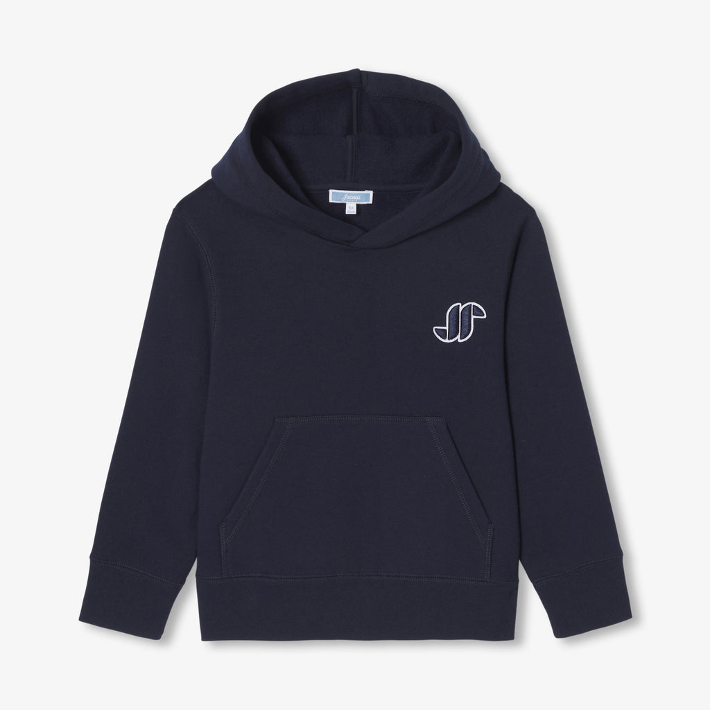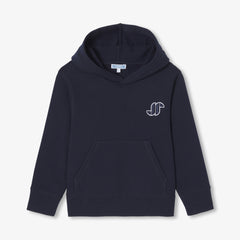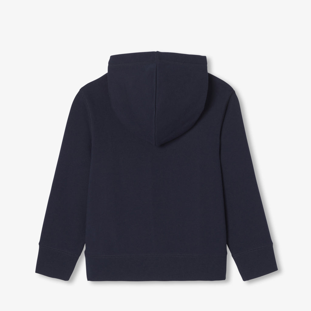 お子さまのお気に入りとなること間違いなしのフード付きパーカー。カジュアルなスポーツウェア風のカッティングとカンガルーポケットが特徴的。合わせやすい色合いの都会的なミッドシーズン向けアイテムです。今シーズン、大活躍の予感。