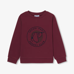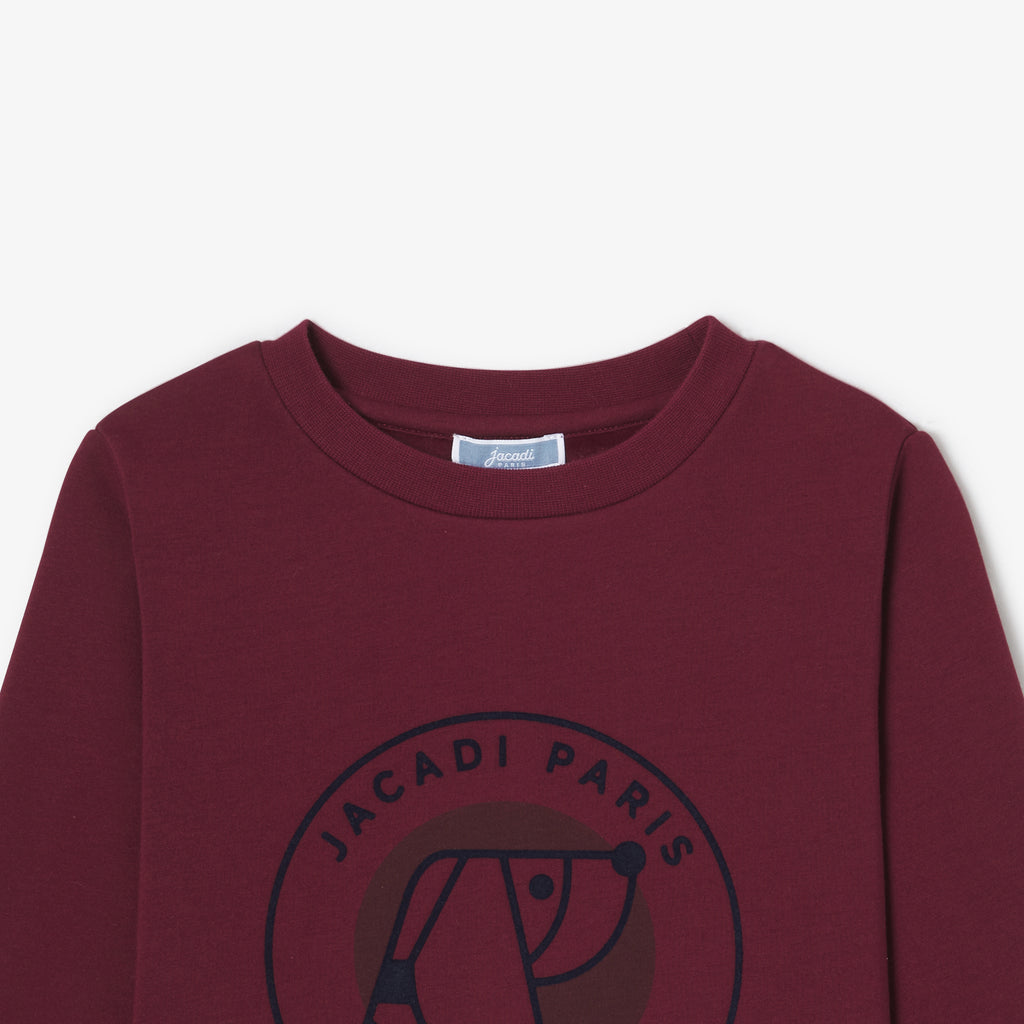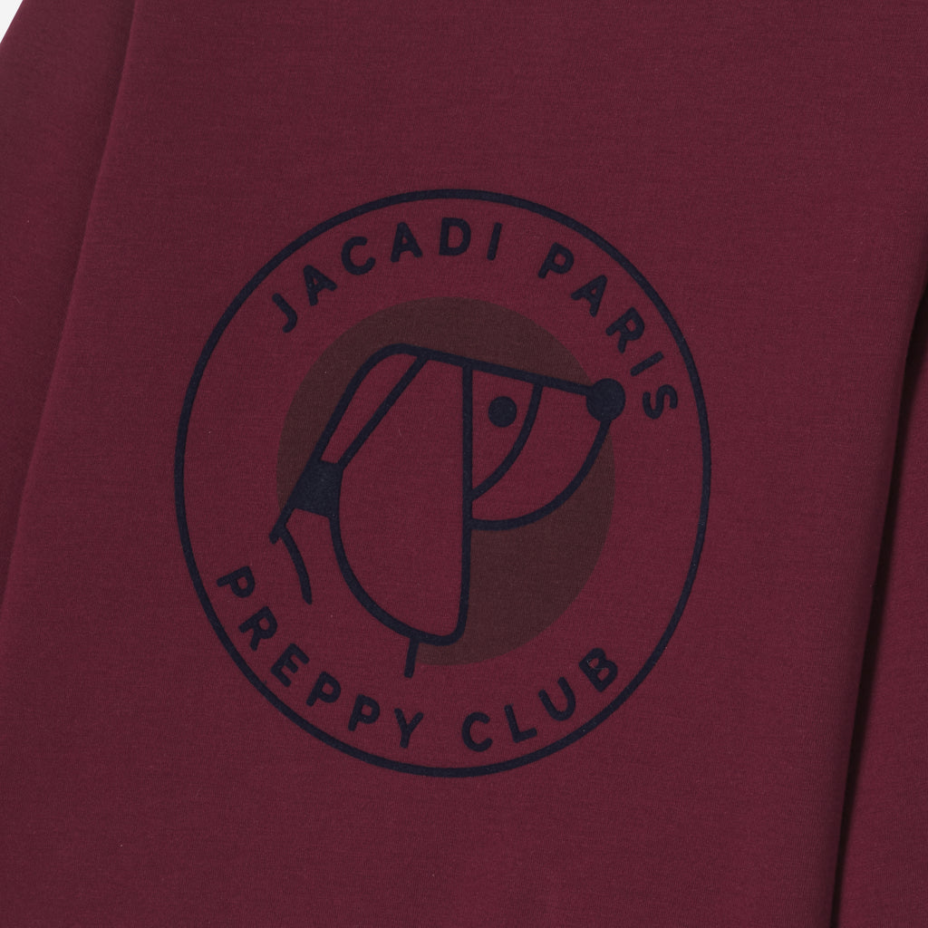 柔らかく暖かなベロア調生地の裏地を施したフリースセーター。デイリーウェアの定番です。上品でパリ風なベロア調パターンをフロッキー加工し、オリジナリティをプラスしました。ジーンズやベロアパンツと合わせれば、カジュアルシックな新学期スタイルが完成します。