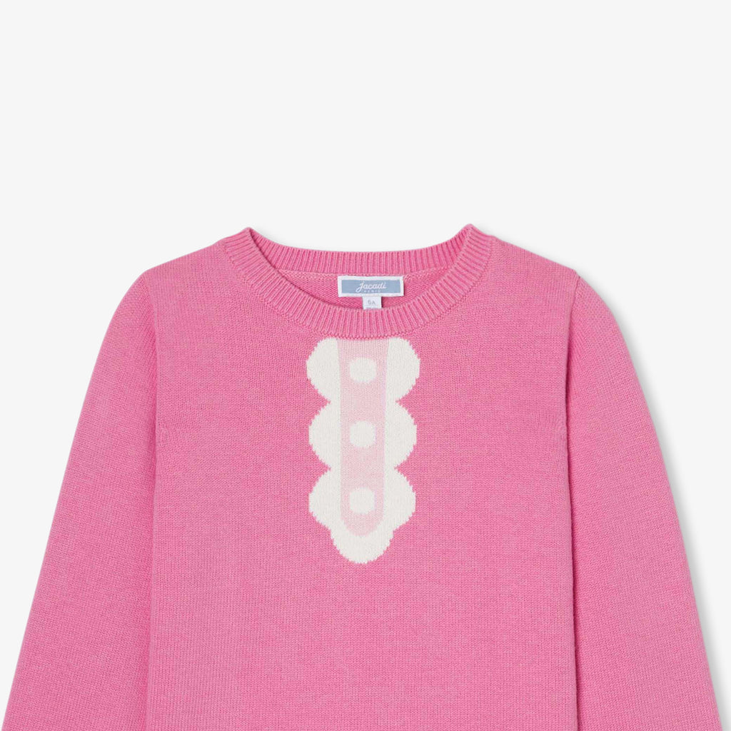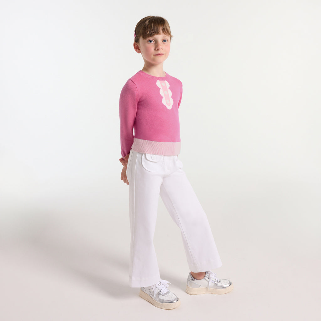 クラシカルなセーターが、今シーズンはシックでモダンになって登場。オーガニックコットンとレスポンシブルウールを使用し、インターシャ織のボタン式プラケット風デザインが特徴の一着です。ワイドパンツとシューズに合わせれば、パリらしいシックな新学期スタイルに。