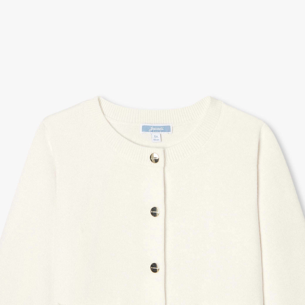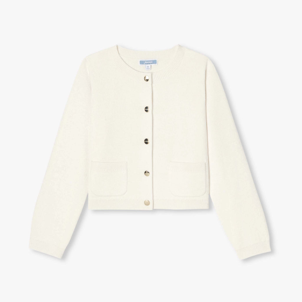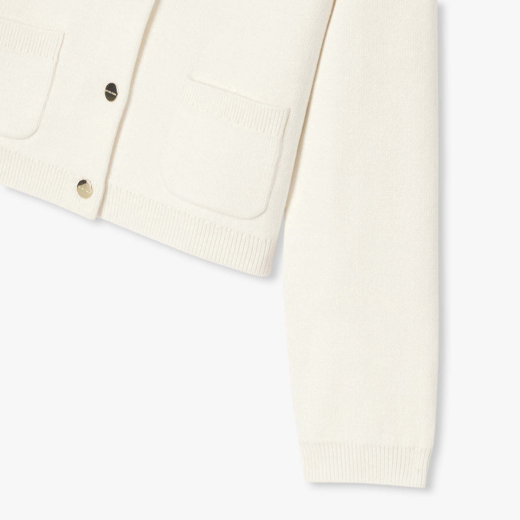 この秋、どんなコーディネートも完成させてくれるジャケット風カーディガン。パッチポケットとスナップボタンがモダンなシルエットを演。柔らかなホワイトカラーは花柄のワンピースやカラフルなTシャツとも好相性です。
