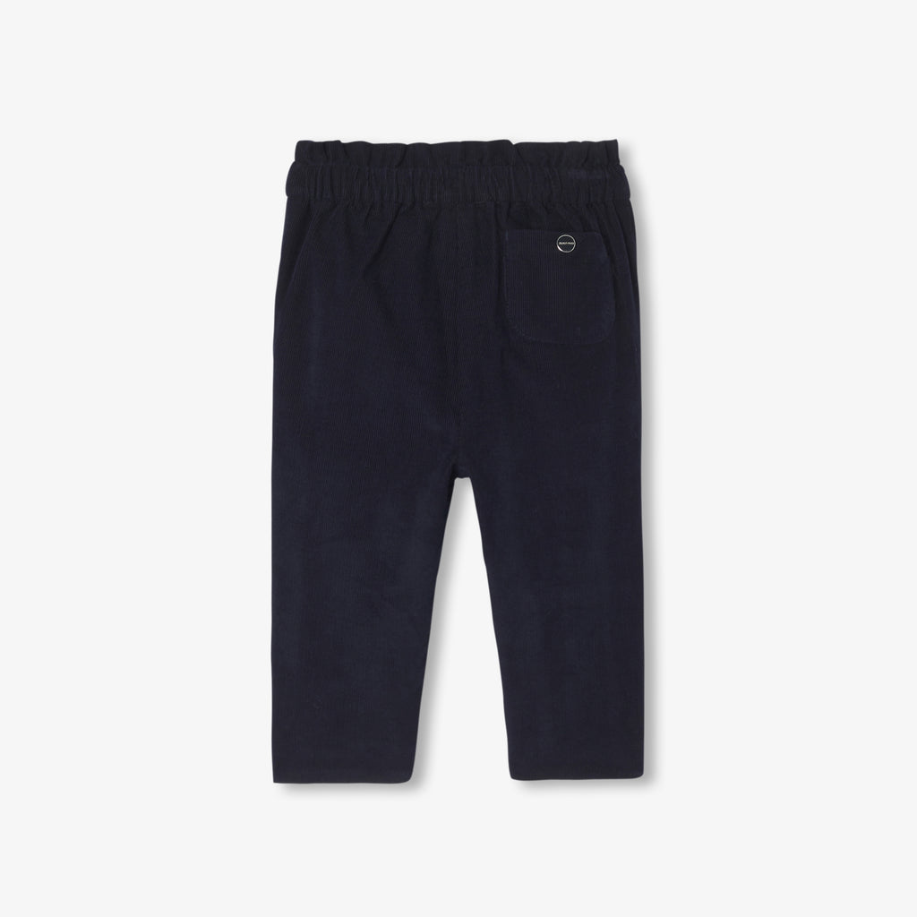 ペーパーバッグウエストのキャロットカットパンツ。ソフトで丈夫な細かいコーデュロイ生地製です。ジャージー素材の裏地付きのクラシックアイテムで、セーターやブラウスとも相性がよく、デイリーに着用できます。
