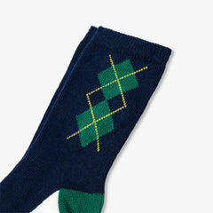英国カレッジ風のハイソックスが再登場。ソフトで履きやすく、ジャガード織のダイヤモンドとインターシャ織のアヒルが、プレッピーで遊び心いっぱいです。毎日の着こなしを完成させてくれるデザイン。
