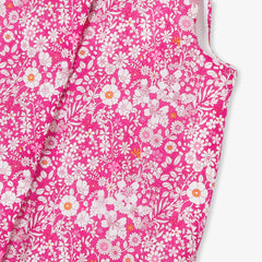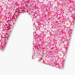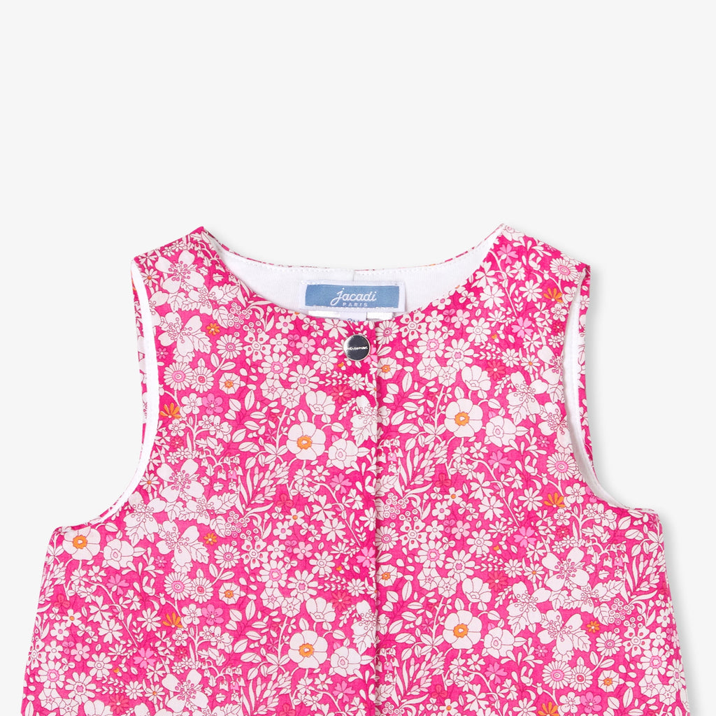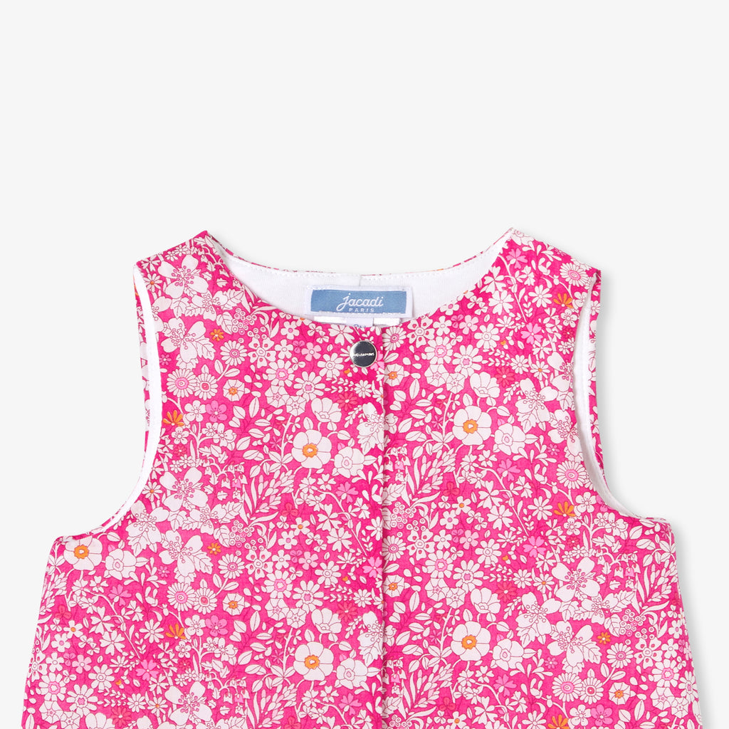 季節を元気いっぱいでフローラルに彩る、リバティプリント(花柄)のロンパース。コットン裏地付き、中綿入りの着心地の良い実用的な一着です。正面と股下のスナップボタンで開閉でき、着脱も簡単。ボディスーツとお揃いのパーカージャケット(別売り)を合わせれば、ロマンチックでカラフルなシルエットが完成します。通園やデイリーユースで大活躍の予感。