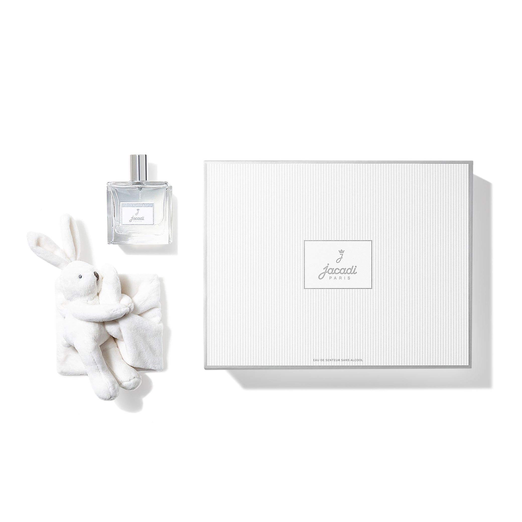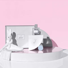 ベルガモットとフリージアのフレッシュで明るいトップノート 、続いてオレンジブロッサムとジャスミンの二つの白いお花を組み合わせた柔らかなミドルノート、そして豊かなムスクとセサミのベースノートが余韻を残します。爽やかで煌めくユニセックスな香りはギフトにもおすすめです。愛らしいウサギのぬいぐるみは、赤ちゃんもにぎりやすい、ベルベット調生地の柔らかい肌触りです。