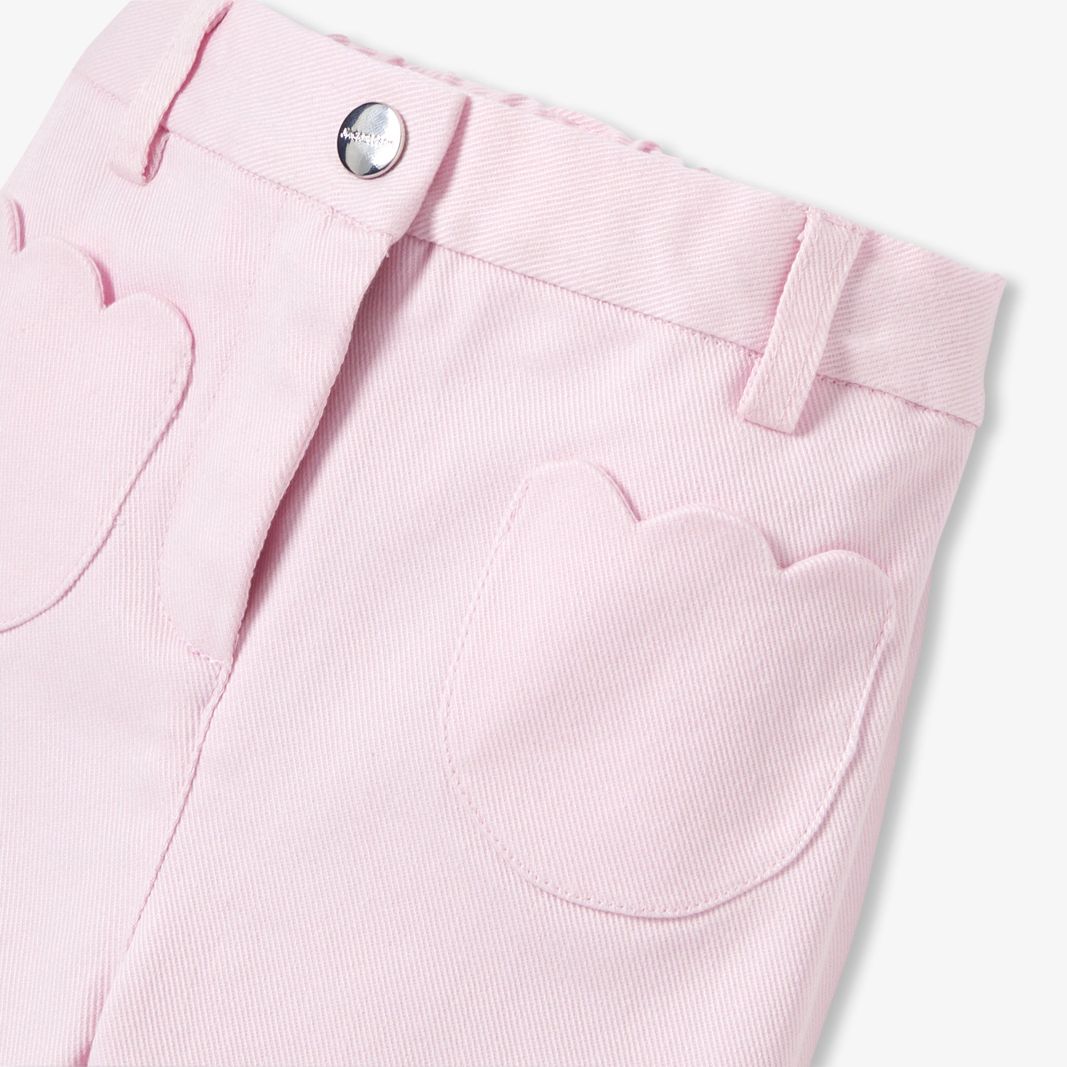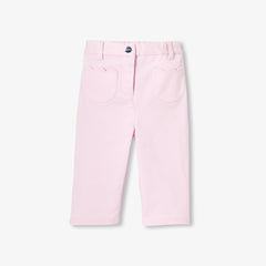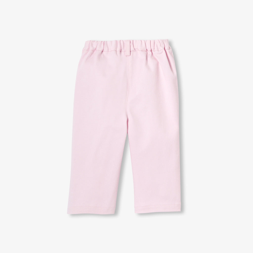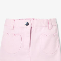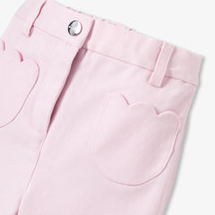 コットンツイルを使用した定番パンツ。遊び心のあるフラワー型のパッチポケットが、これからの季節にぴったりです。すっきりとしたストレートシルエットに、コットンボイルの裏地をあしらった快適な着心地。ホワイトとピンクの2色展開で、コレクションの他のアイテムとの組み合わせも楽しめます。