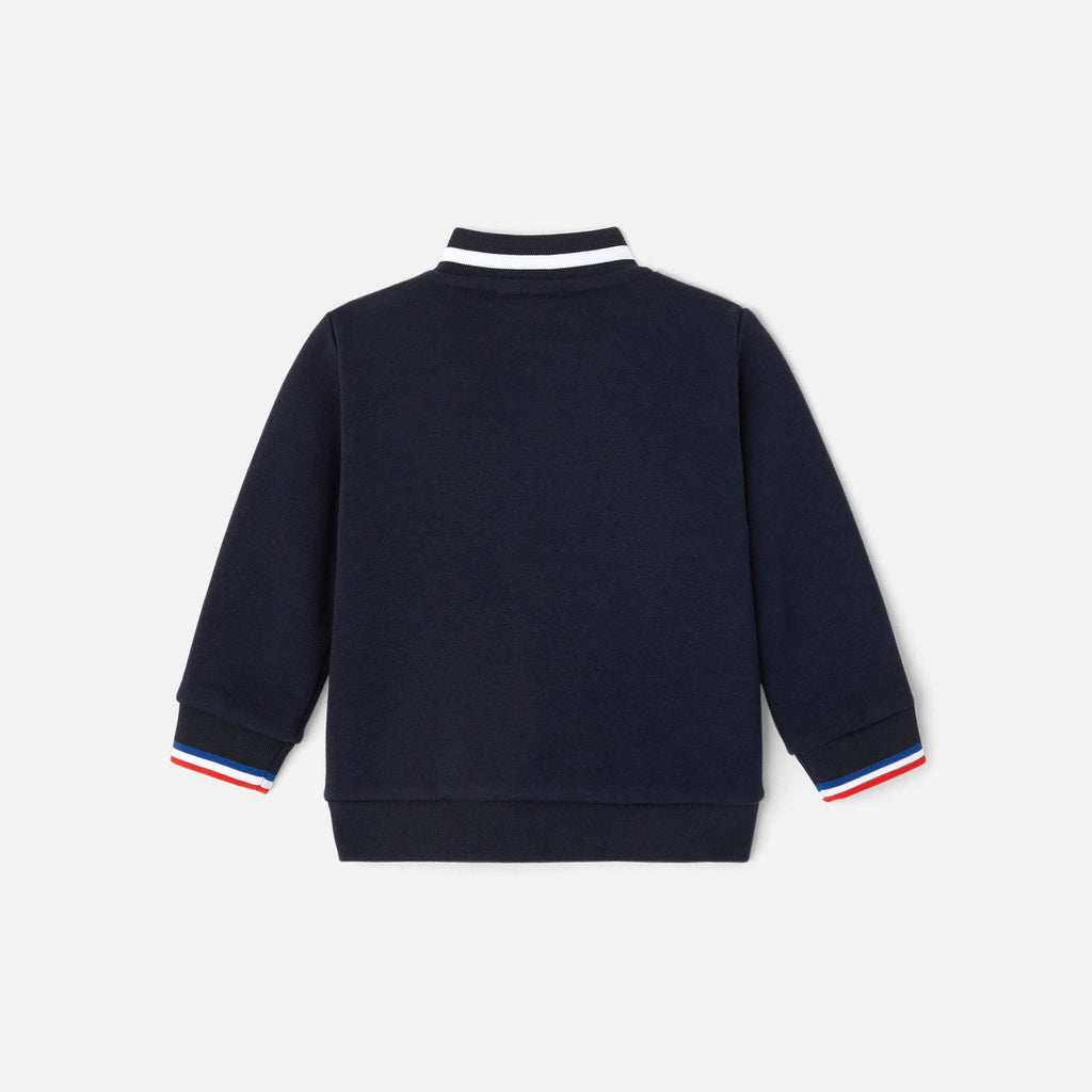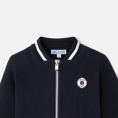 スポーティーシックで機能的なジップアップカーディガンは秋のお出掛けにぴったり。ストライプ襟やトリコロールカラーがフレンチタッチなデザインです。