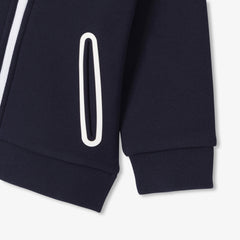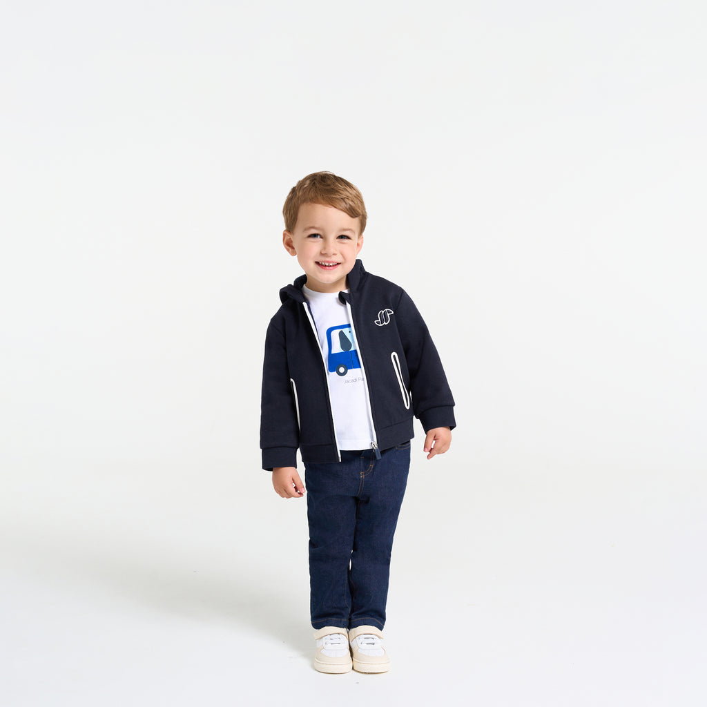 スポーツウェアの精神をモダンにアレンジしたジップアップスウェット。ソフトで快適なフリースを使用しました。コントラストの効いたファスナー、ポケットのフレーム、胸のジャカディのバッジなど、すっきりとしたディテールが特徴。季節のワードローブに加えて、毎日の装いに都会的なエッセンスを。