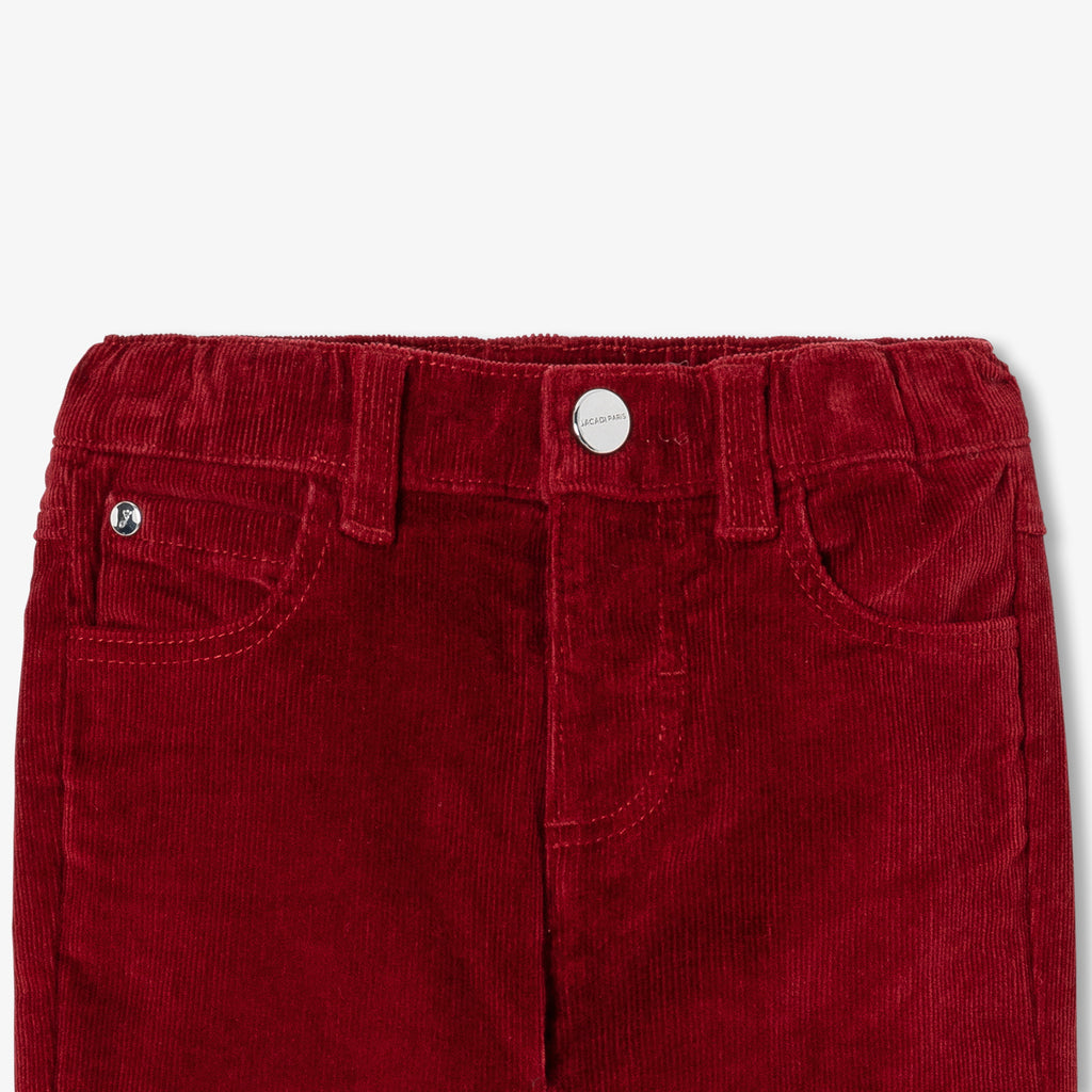細かいコーデュロイ生地とコットンボイルの裏地が快適なパンツ。毎日の必需品です。ボタンで開閉するため着脱も簡単。保育園でもご家庭でも、季節の始まりにぴったりの着心地の良いアイテムです。