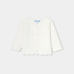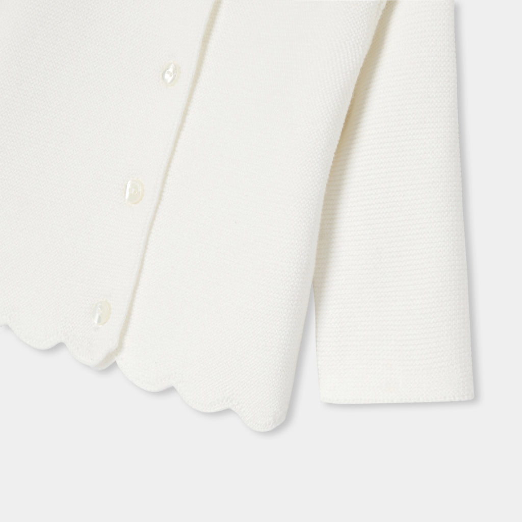 柔らかでしなやかなコットンを使用した、ガーター編みのニットカーディガン。新しい季節のワーロドーブに欠かせない一枚です。スカラップ裾とボタンがポイントで、日常着にぴったり。優しげなピンクの色合いが美しく、ブラウスやサロペットと合わせてジャカディコレクションのコーディネートを楽しんで。