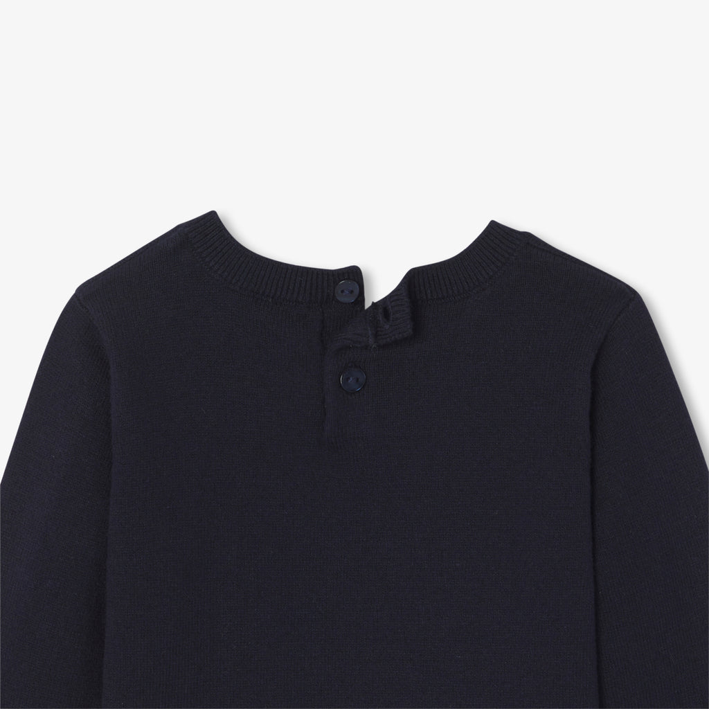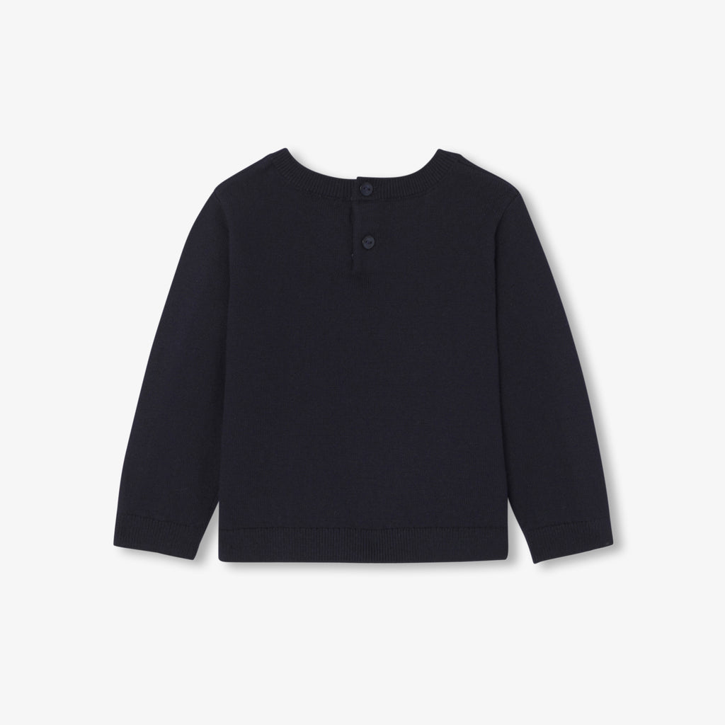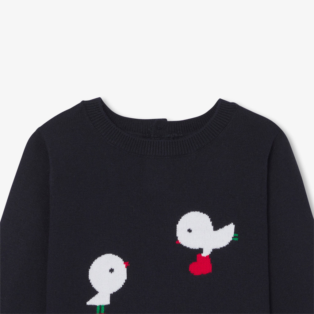 毎日のワードローブに欠かせないセーターは、遊び心のあるインターシャ織の鳥と花が特徴。コットンとレスポンシブルウールを使用したボタンダウンのモデルです。襟付きのボディスーツと細かいコーデュロイ生地のショートパンツに合わせれば、パリらしいシックなカジュアルスタイルが完成します。
