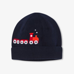 ワードローブの定番アイテムを、遊び心のあるデザインでアレンジした帽子。柔らかなニット素材と、肌触りの良いマイクロフリースの裏地が特徴です。折り返しをモダンにアレンジしています。お揃いのスヌード(別売り)と合わせれば、電車好きのお子さまのお気に入りに。