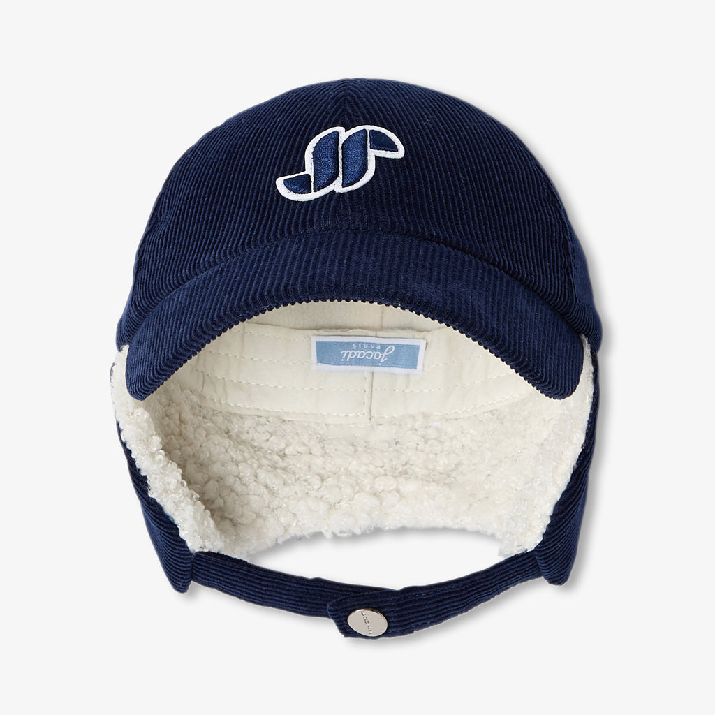 ベロア調生地を使用したキャップ。クラシカルなキャップのスポーティーなデザインと、シャプカのような快適な被り心地を兼ね備えています。