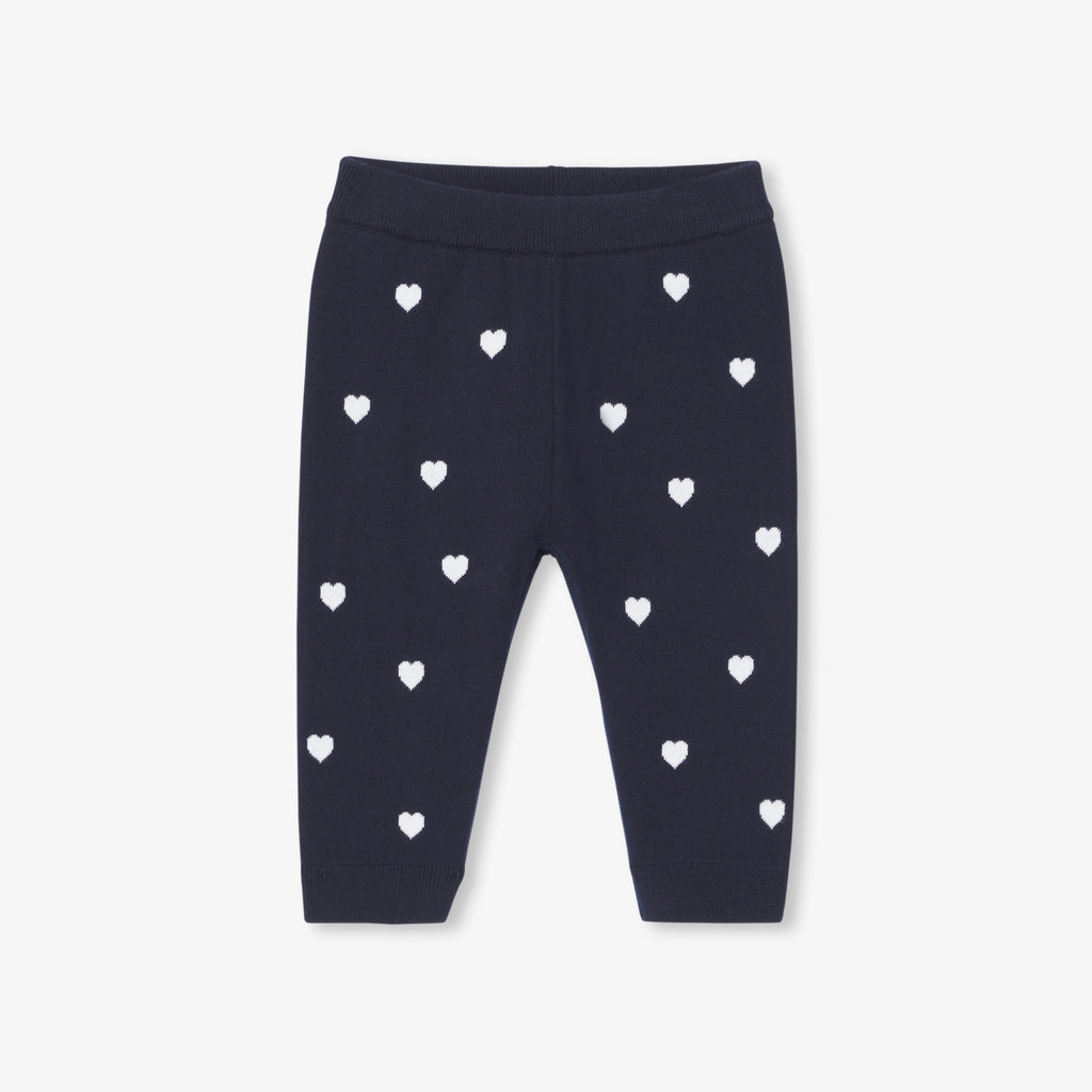 ジャガード織のハートの魅力とオーガニックコットンニットの心地よさを併せ持つパンツ。快適な毎日を約束します。ソフトで履きやすく、伸縮性のあるウエストゴム入り。ボディスーツやお揃いのカーディガン(別売り)と合わせれば、モダンなシルエットに。