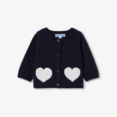 クラシカルなモデルをモダンにリアレンジ。今シーズンの装いに欠かせないカーディガンが登場しました。柔らかで暖かみのあるジャージー素材を使用しており、インターシャ織の小さな白いハートがアクセントに。デニムワンピースやベロア調生地のサロペットと合わせれば、どんなスタイルもおしゃれに仕上がります。