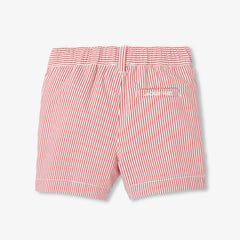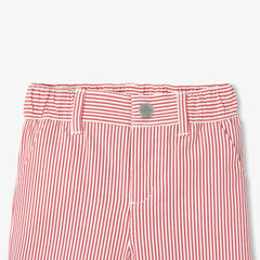 フレンチテイストが香る、柔らかく着心地が良いツイル素材のショートパンツ。細いストライプ柄で、着脱も簡単なワードローブに欠かせない一着。春夏の季節にはTシャツやポロシャツと合わせて、新学期の始まりまで長く着られます。