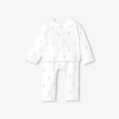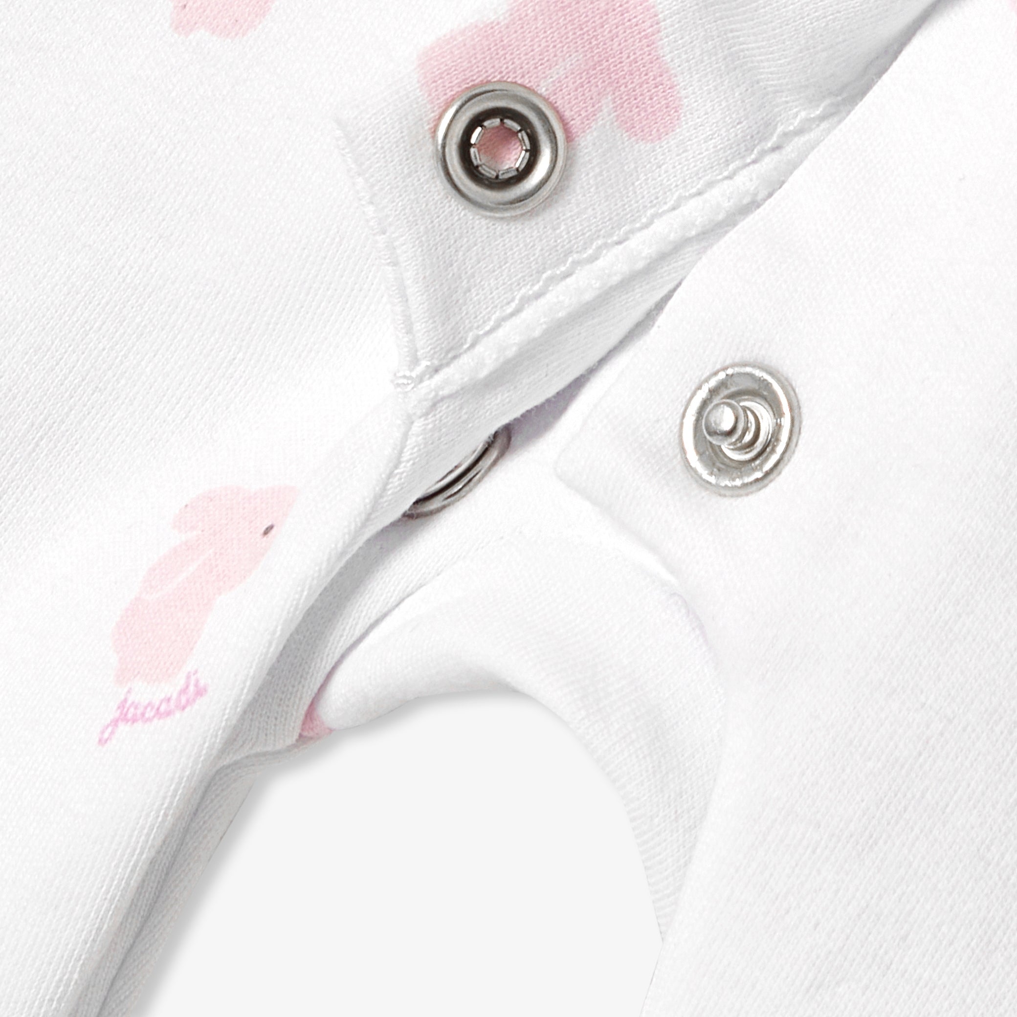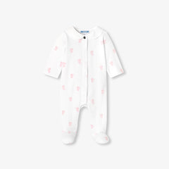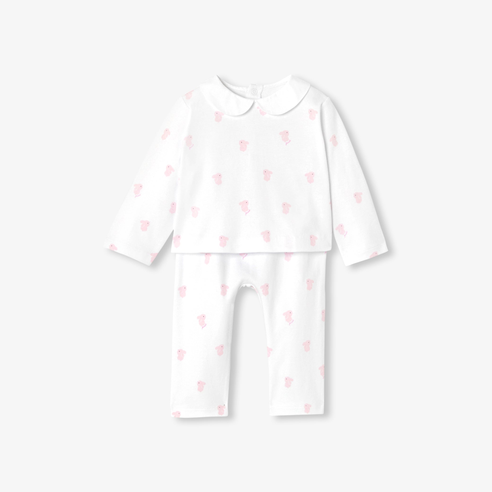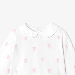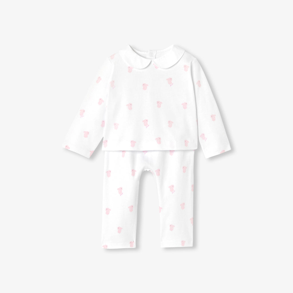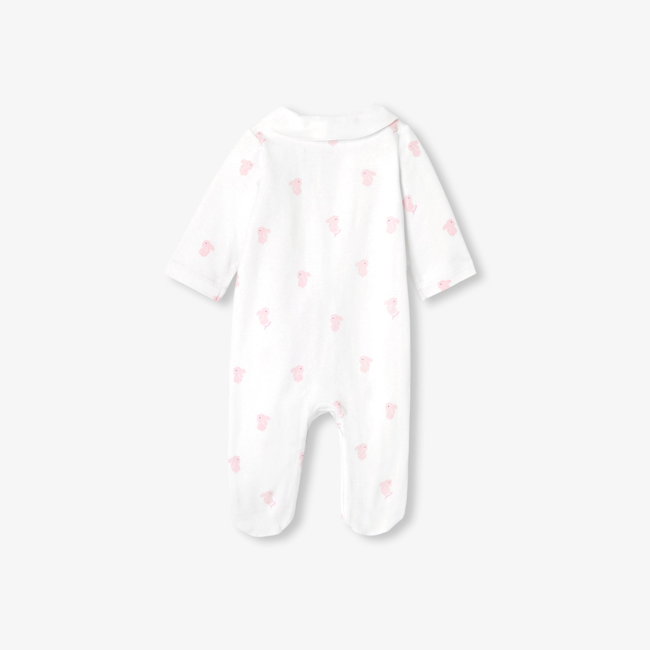 小さなうさぎのモチーフと、エレガントなポプリン素材のピーターパンカラー(襟)をあしらったデザイン。