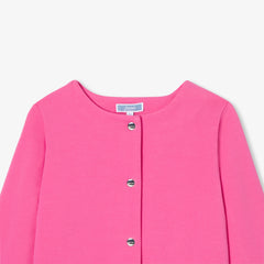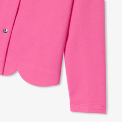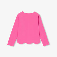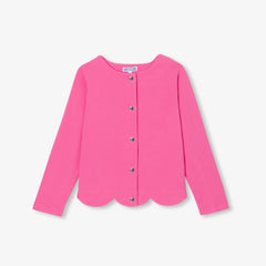 柔らかなオーガニックフリースのカーディガンは日常着にぴったり。スカラップの裾がモダンなデザイン。肌寒い季節にブラウスやTシャツの羽織りとしてもおすすめです。