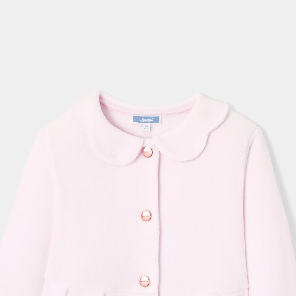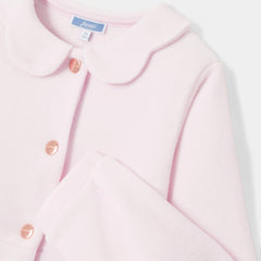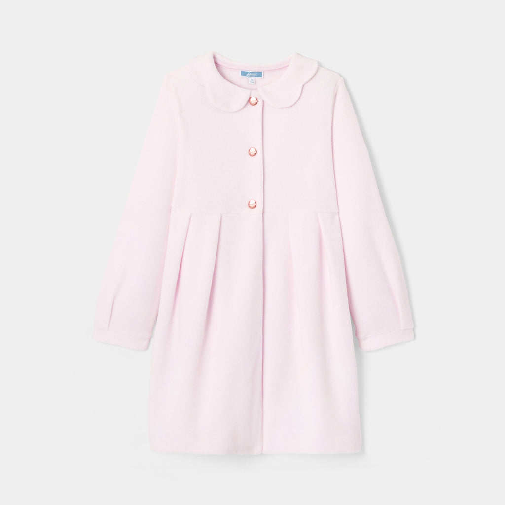 可愛らしいスカラップ襟が付いたフリースガウン。ナイトドレスやパジャマの上に羽織れば、夜のお休み前も朝起きてすぐにも活躍します。